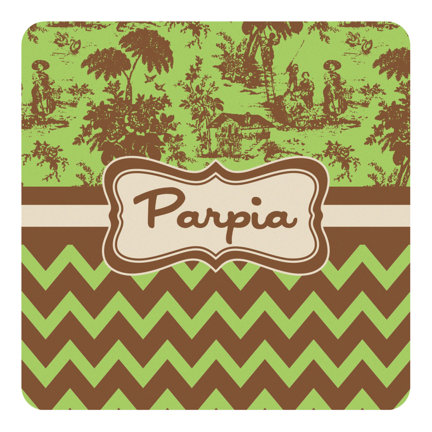 Old world toile just got dressed up. Toile has been around forever but we have taken a centuries old design and brought it to the present and beyond. We took the traditional toile design and modernized it by using brown and green. The toile pattern on top is created in brown which pops on a backdrop of green. On the bottom we have used the very modern chevron pattern in the same green and brown.