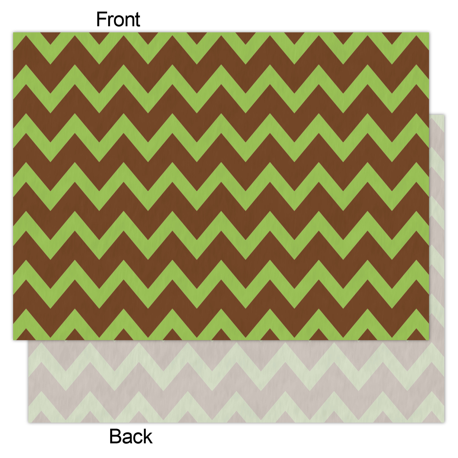 Old world toile just got dressed up. Toile has been around forever but we have taken a centuries old design and brought it to the present and beyond. We took the traditional toile design and modernized it by using brown and green. The toile pattern on top is created in brown which pops on a backdrop of green. On the bottom we have used the very modern chevron pattern in the same green and brown.