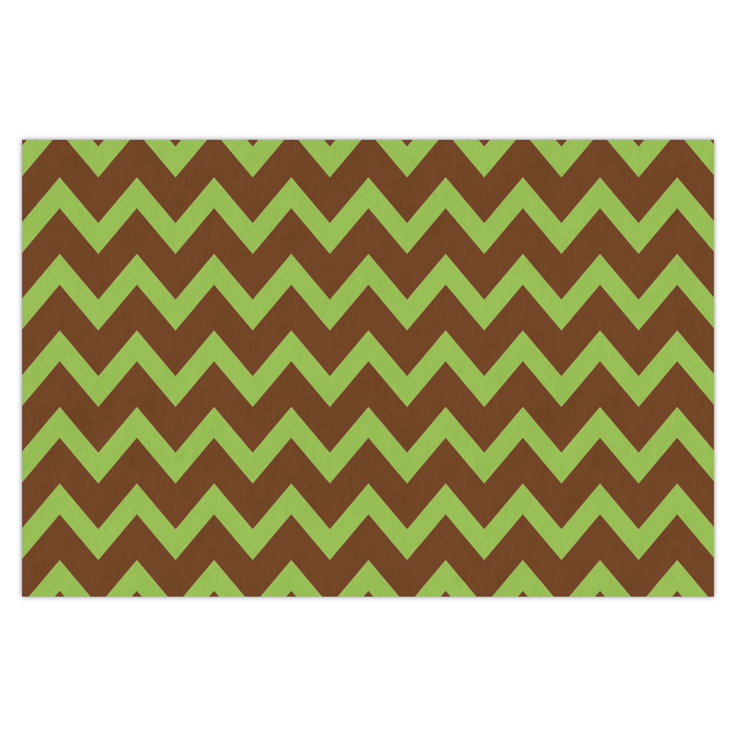 Old world toile just got dressed up. Toile has been around forever but we have taken a centuries old design and brought it to the present and beyond. We took the traditional toile design and modernized it by using brown and green. The toile pattern on top is created in brown which pops on a backdrop of green. On the bottom we have used the very modern chevron pattern in the same green and brown.