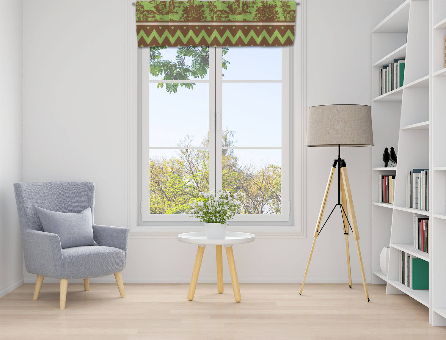 | SKU | mi-valance-ul+Green-Brown-Toile-Chevron |