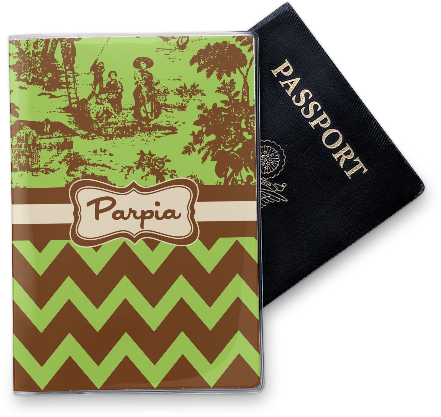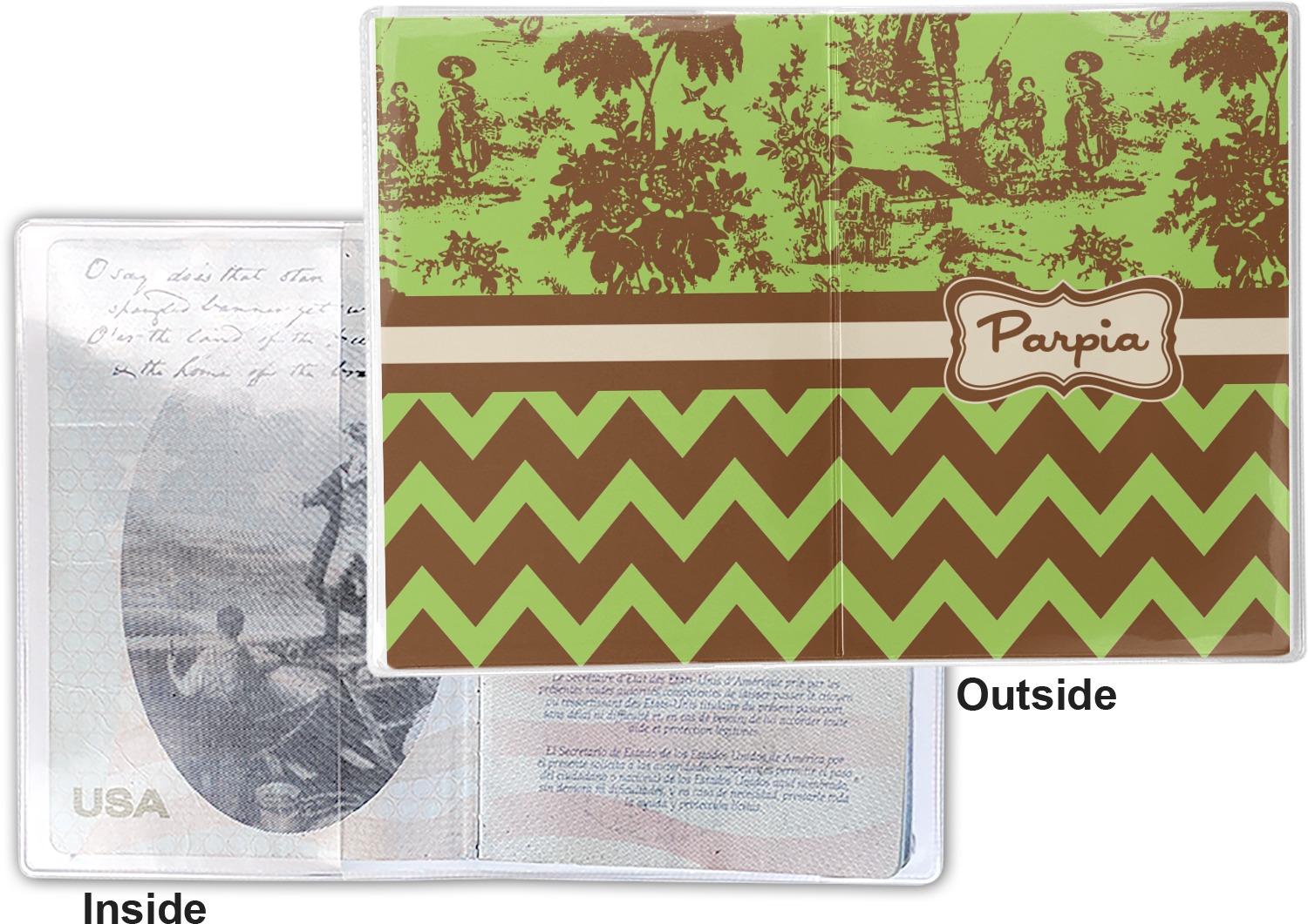 This cover is made of a sturdy clear vinyl with a personalized vinyl insert inside. There is a large and a small pocket on either side to hold the covers of your passport easily and firmly. The passport holder is approximately 7.5" x 5.25", the perfect size to snugly fit your passport. This slim cover is the perfect way to protect your passport without being one more bulky item you have to carry.