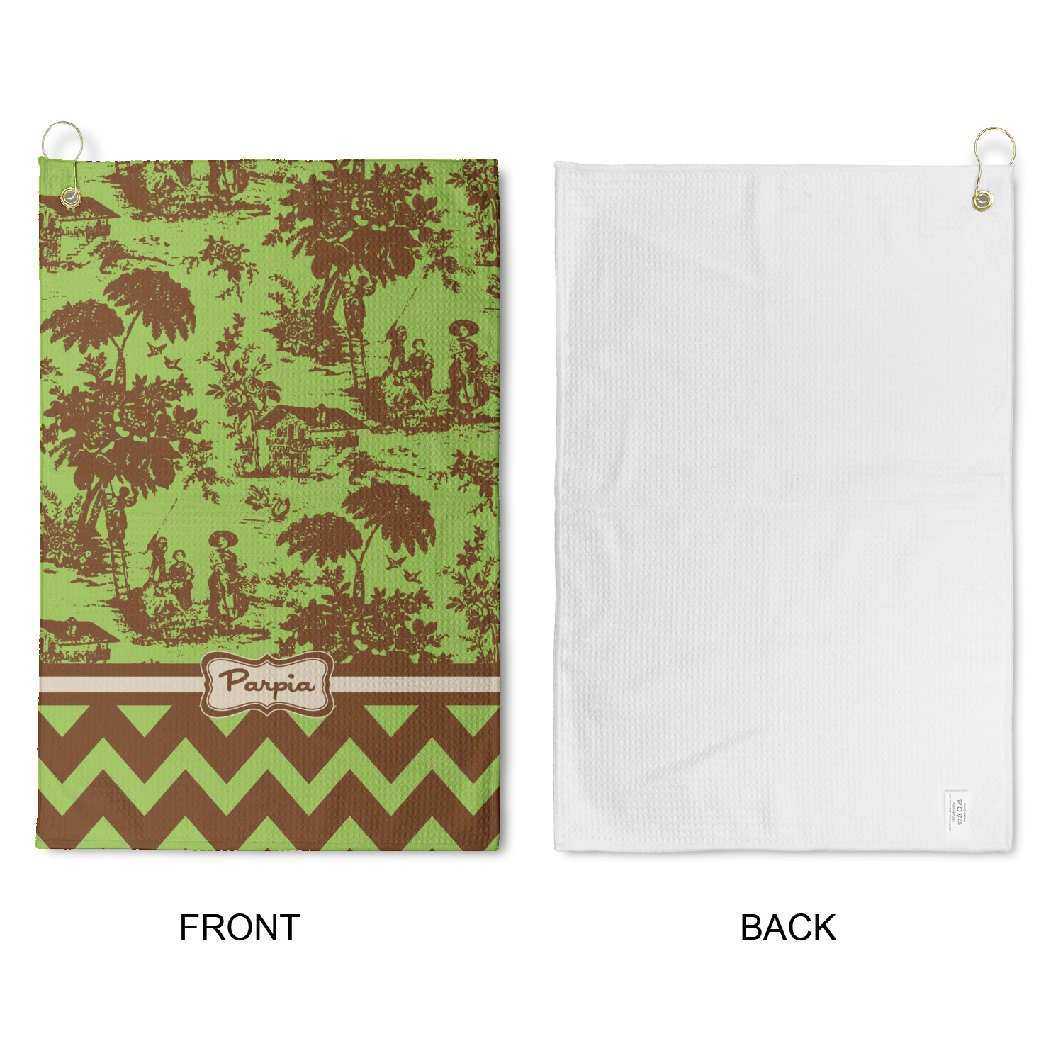 Measuring approximately 16in wide and 24in tall these towels are the perfect size for your golf bag or on your cart. The waffle weave texture makes a great texture for cleaning clubs, balls and anything else you need to clean during your golf game.