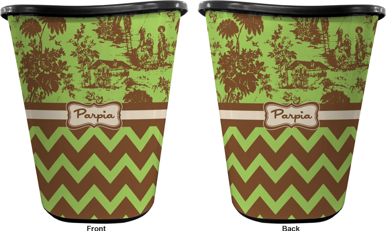 You can choose to purchase these decorative wastebaskets in either a white or a black color that will show on the base and the upper rim. Your customization is printed on a high-gloss, fine-quality vinyl adhesive, and you can choose to either have this adhesive applied to one side only or to both sides. As such, this plastic wastebasket can be single-sided or double-sided, depending on your creative vision. Your customization is printed using durable inks, making the design waterproof and resistant to fading over time.