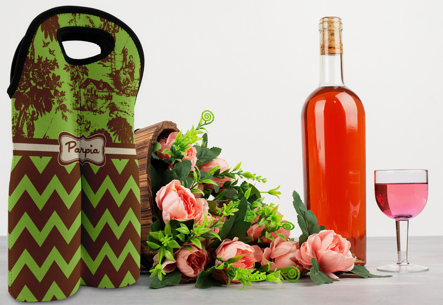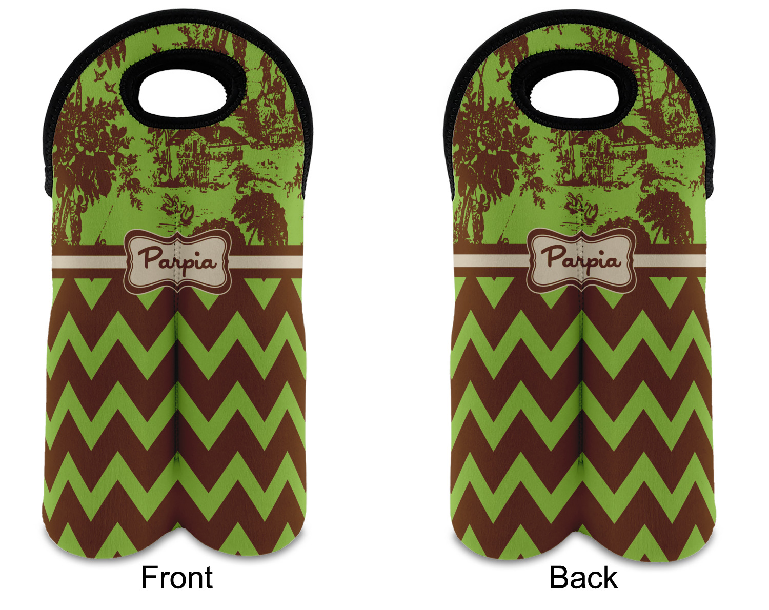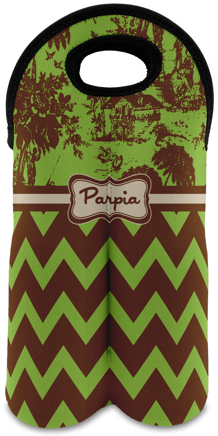 | SKU | mi-wine-tote-double+Green-Brown-Toile-Chevron |