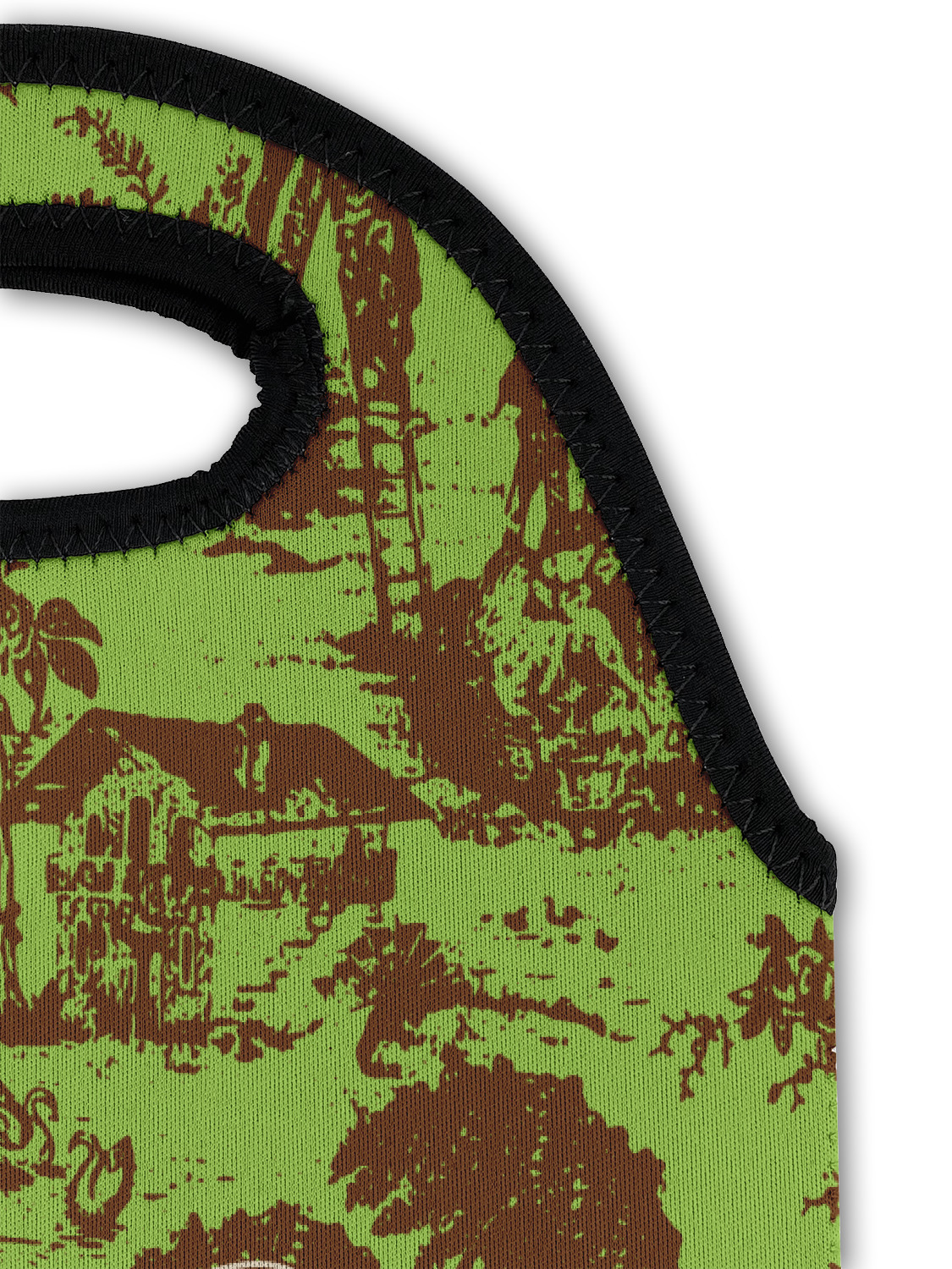 Old world toile just got dressed up. Toile has been around forever but we have taken a centuries old design and brought it to the present and beyond. We took the traditional toile design and modernized it by using brown and green. The toile pattern on top is created in brown which pops on a backdrop of green. On the bottom we have used the very modern chevron pattern in the same green and brown.