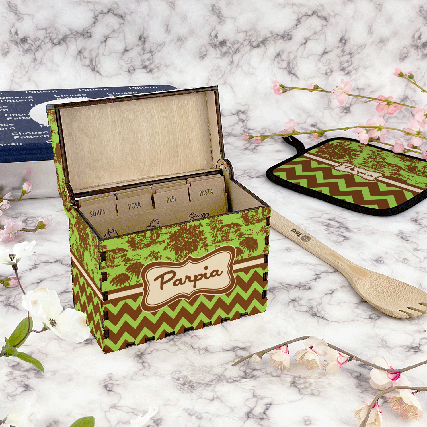 For a classic look for your kitchen counter to hold all of your family heirloom recipes look no further than this full color printed wood recipe box. These recipe boxes are sure to add a nice custom touch to your kitchen and allow you to proudly display your treasured family recipes in a beautiful custom recipe box.