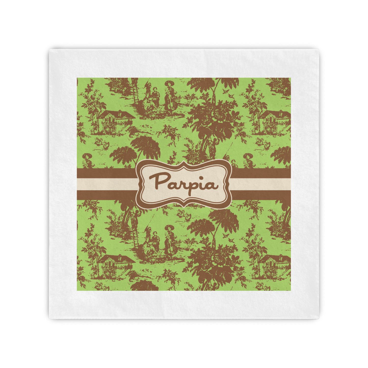 Old world toile just got dressed up. Toile has been around forever but we have taken a centuries old design and brought it to the present and beyond. We took the traditional toile design and modernized it by using brown and green. The toile pattern is created in brown which pops on a backdrop of green.