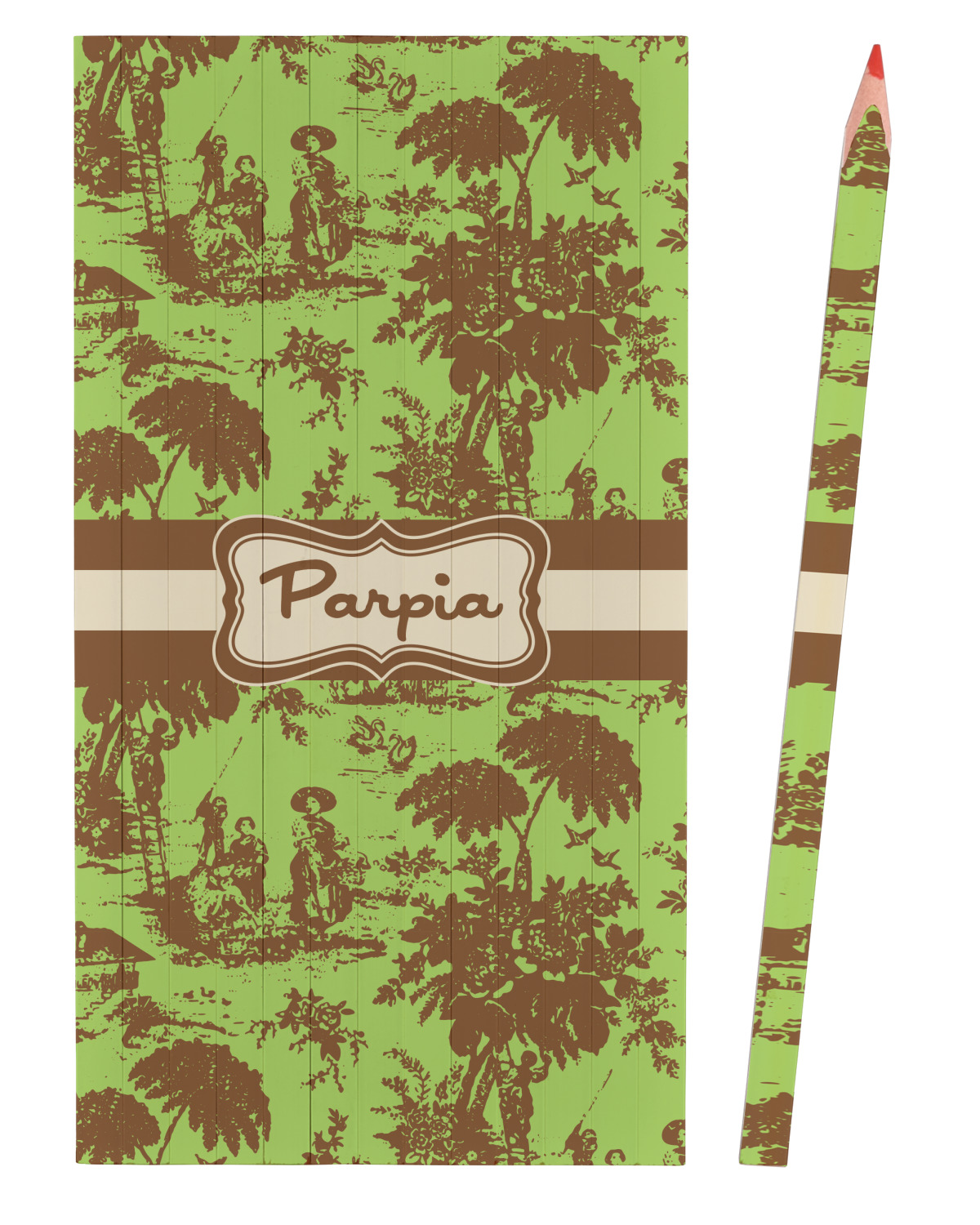 Old world toile just got dressed up. Toile has been around forever but we have taken a centuries old design and brought it to the present and beyond. We took the traditional toile design and modernized it by using brown and green. The toile pattern is created in brown which pops on a backdrop of green.