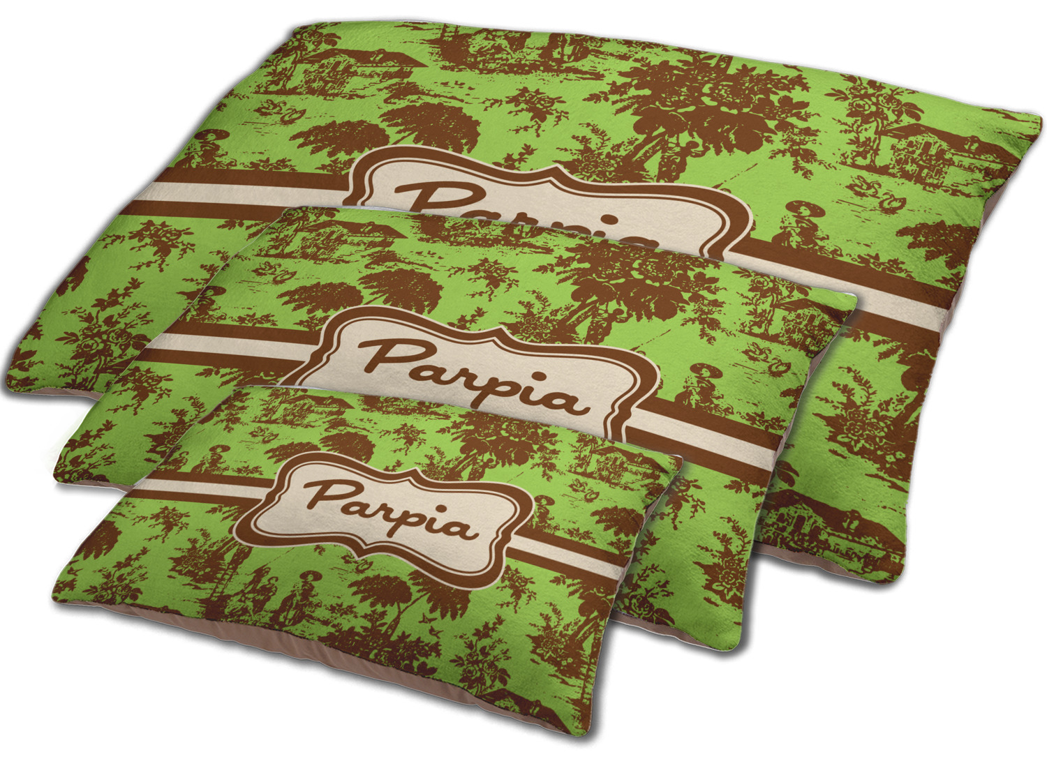 Old world toile just got dressed up. Toile has been around forever but we have taken a centuries old design and brought it to the present and beyond. We took the traditional toile design and modernized it by using brown and green. The toile pattern is created in brown which pops on a backdrop of green.