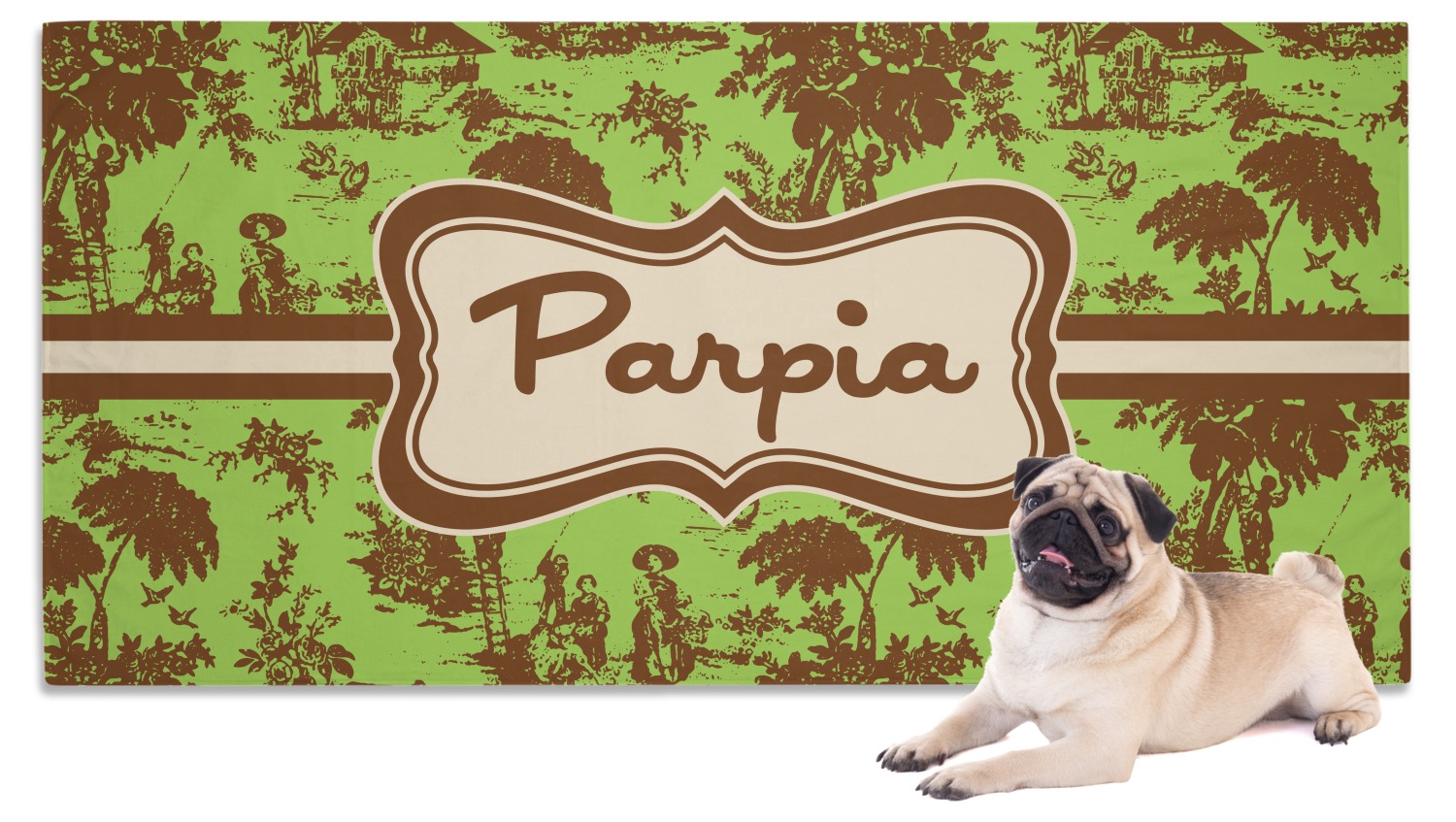 Our custom towels are crafted from a special blend of polyester and polyamide, which contributes to its lightweight, yet thoroughly absorbent nature. We craft it as such to guarantee efficiency as a convenient product; its lightweight nature makes it easy to roll up and carry along, yet it is still able to dry off even the wettest, muddiest pet. It measures at 60" x 30" and is sizable enough to dry off even the largest of pets. With our towel's gentle, soft-to-the-touch material, your pet will be sure to anticipate its warm, dry embrace. We print your personalized design on the front of the towel, while the back is white.