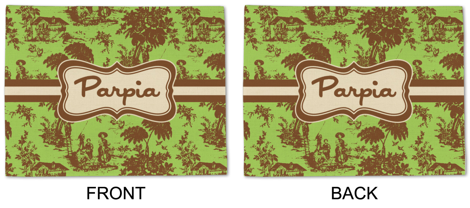 Old world toile just got dressed up. Toile has been around forever but we have taken a centuries old design and brought it to the present and beyond. We took the traditional toile design and modernized it by using brown and green. The toile pattern is created in brown which pops on a backdrop of green.