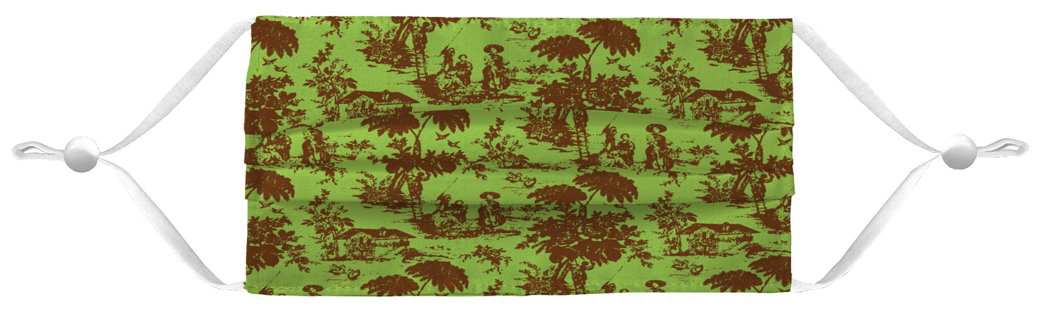 Old world toile just got dressed up. Toile has been around forever but we have taken a centuries old design and brought it to the present and beyond. We took the traditional toile design and modernized it by using brown and green. The toile pattern is created in brown which pops on a backdrop of green.