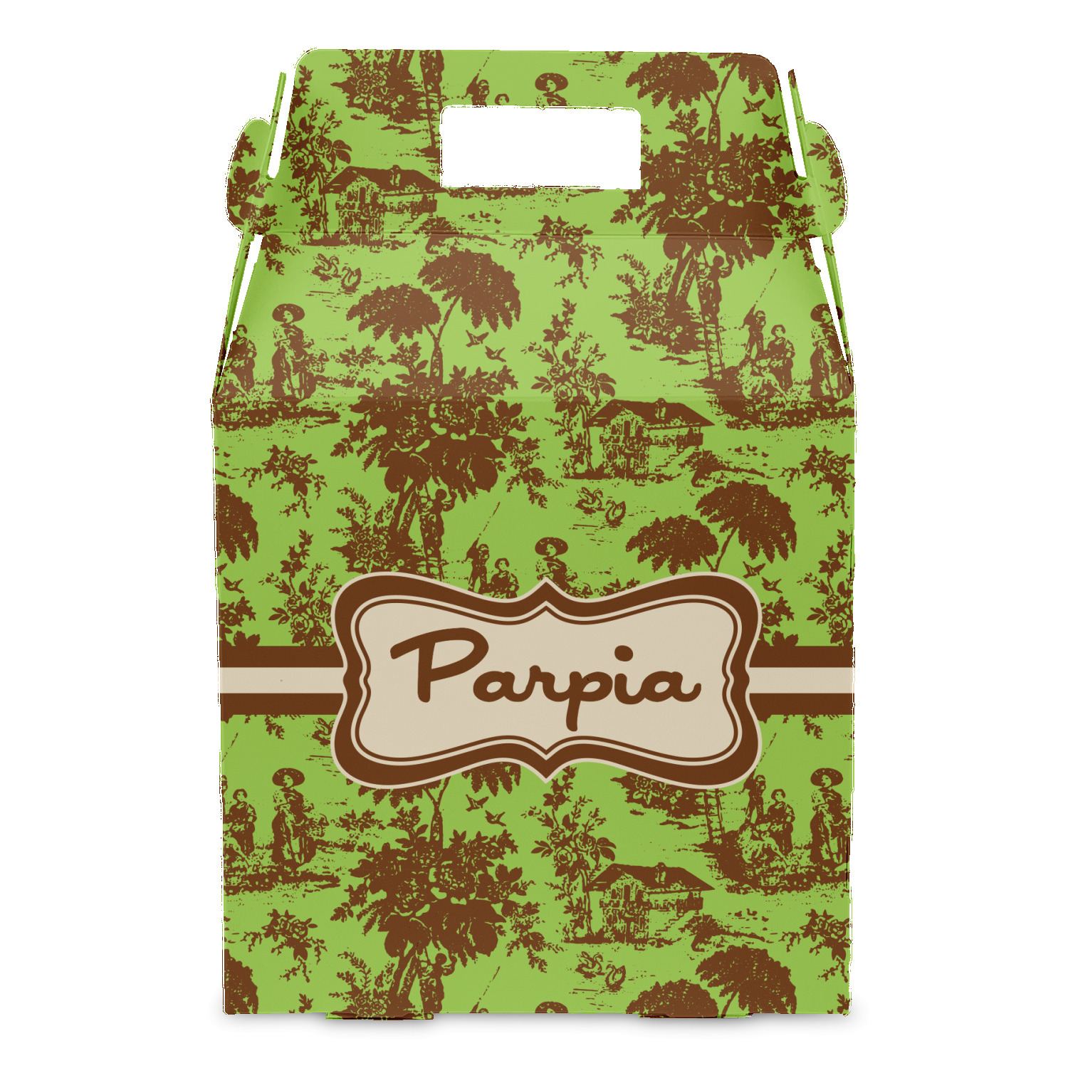 Old world toile just got dressed up. Toile has been around forever but we have taken a centuries old design and brought it to the present and beyond. We took the traditional toile design and modernized it by using brown and green. The toile pattern is created in brown which pops on a backdrop of green.