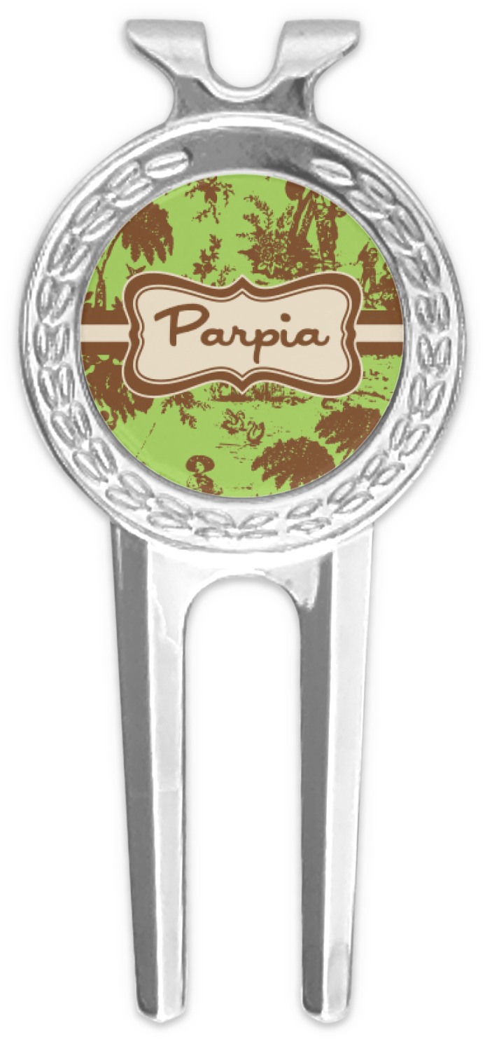 This great little stainless steel divot tool is two-pronged and is approximately 3.25" x 1.5". The two prongs make is a breeze to fix any divots. There is a golf ball shaped place on the back of your tool where your thumb can sit in order to do this easily.