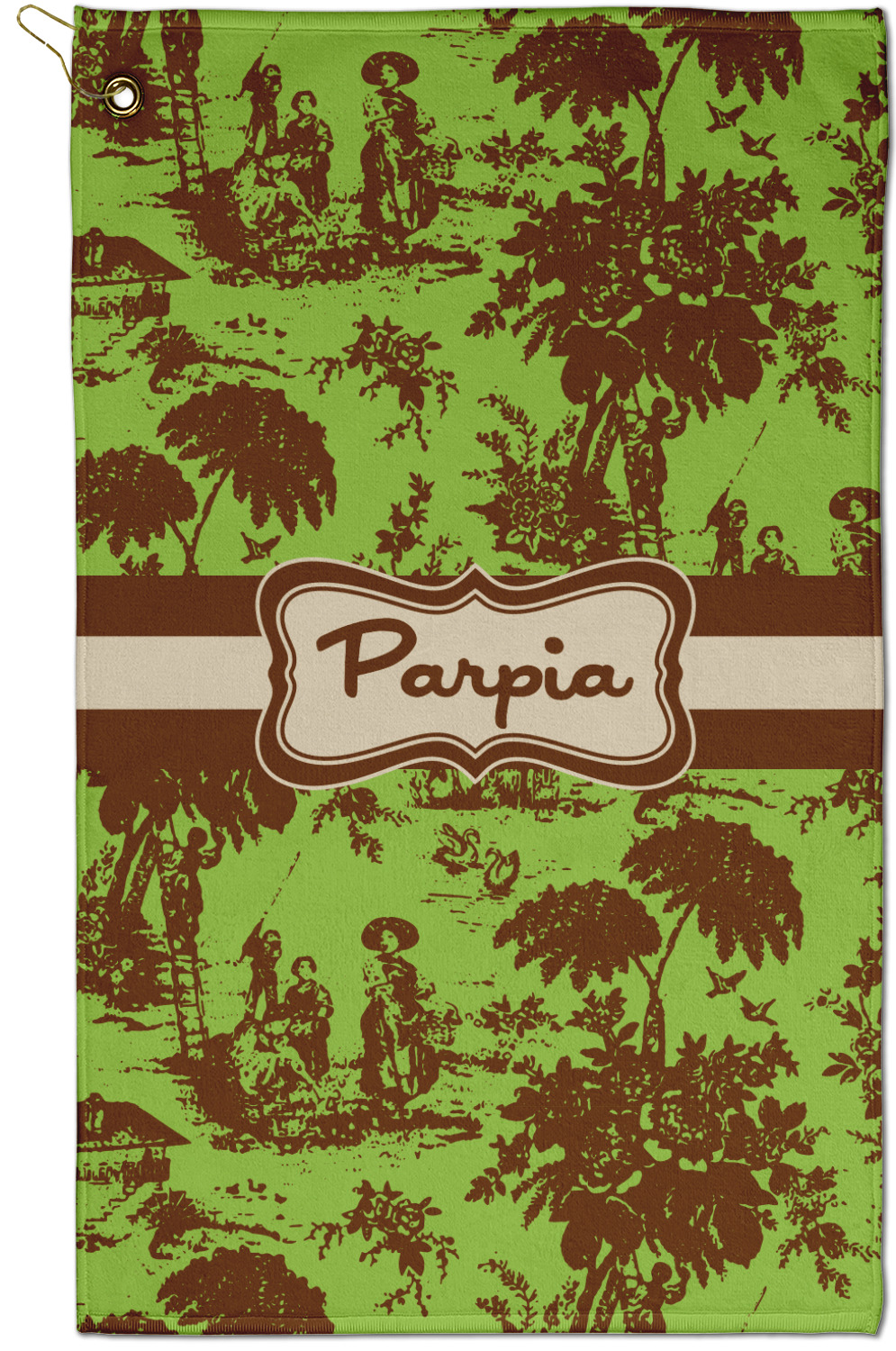 | SKU | mi-fp-golf-towel-1118+Green-Brown-Toile |