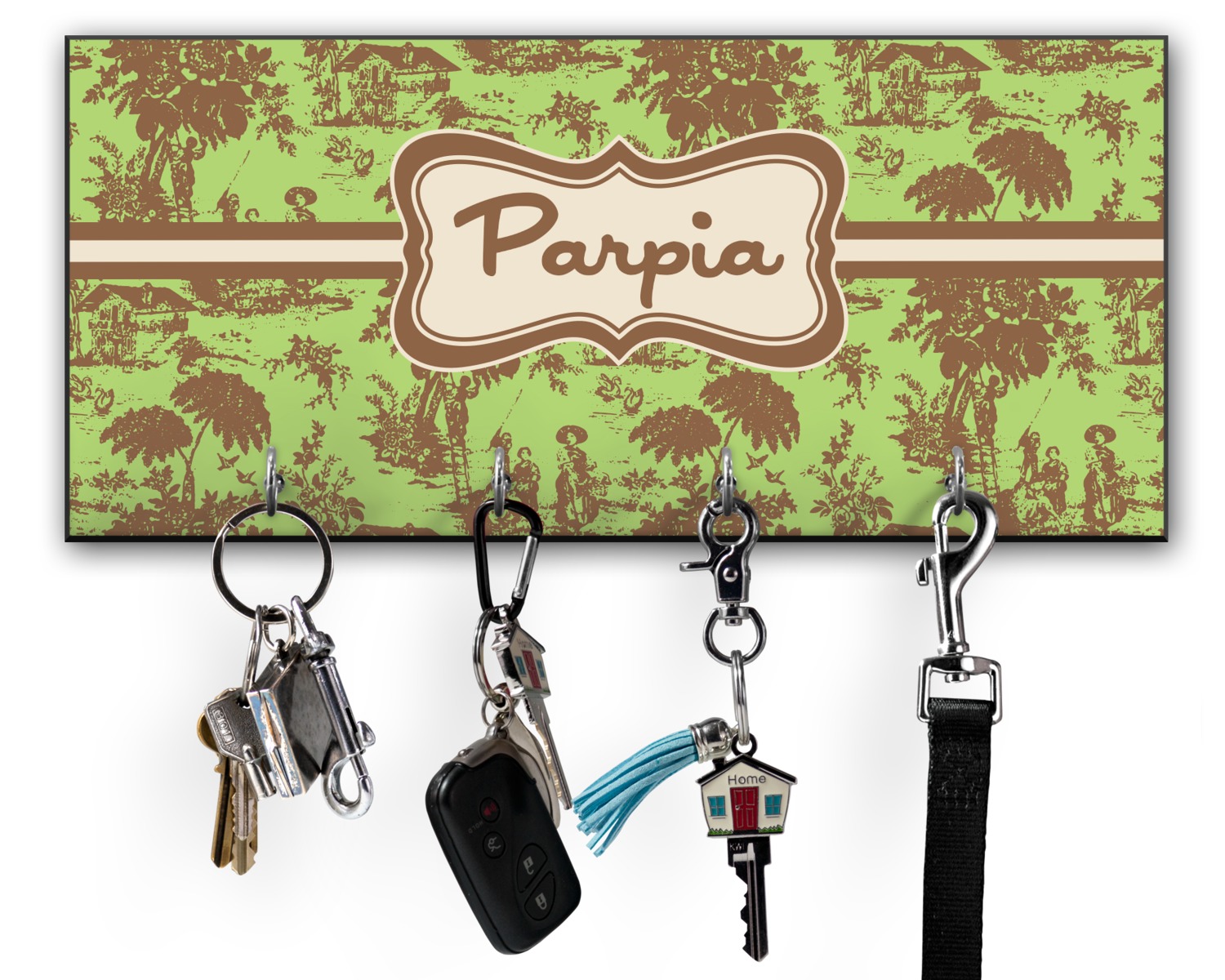 This 11" x 5" key hanger is made of sturdy wood and has four metal hooks lining the bottom. This is the perfect size for a family with several drivers. Not only can you hang keys on it though, but pet leashes and other small items. The board is black on the sides and back and is printed with the design of your choice on the front.