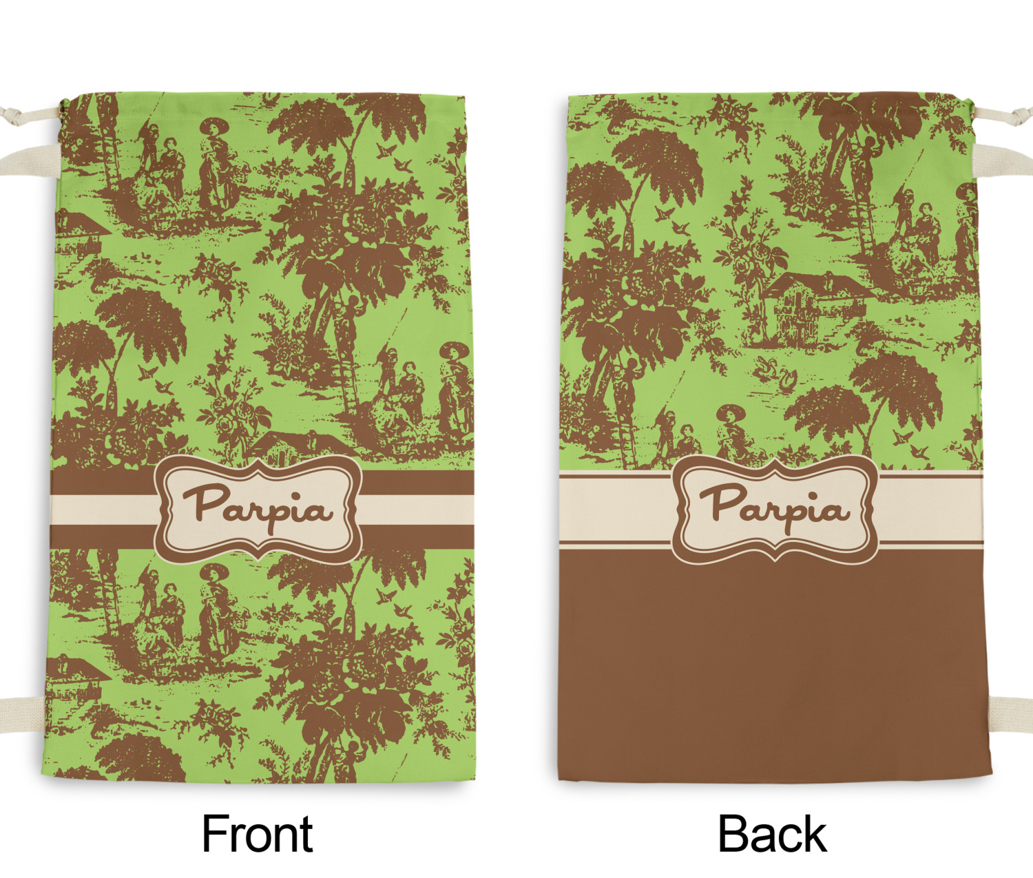 Carry your laundry in style with these customized laundry bags. Available in two sizes, featuring a natural colored woven strap and a cinch cord, these bags hold a lot of clothes or anything else you want to fit in them.