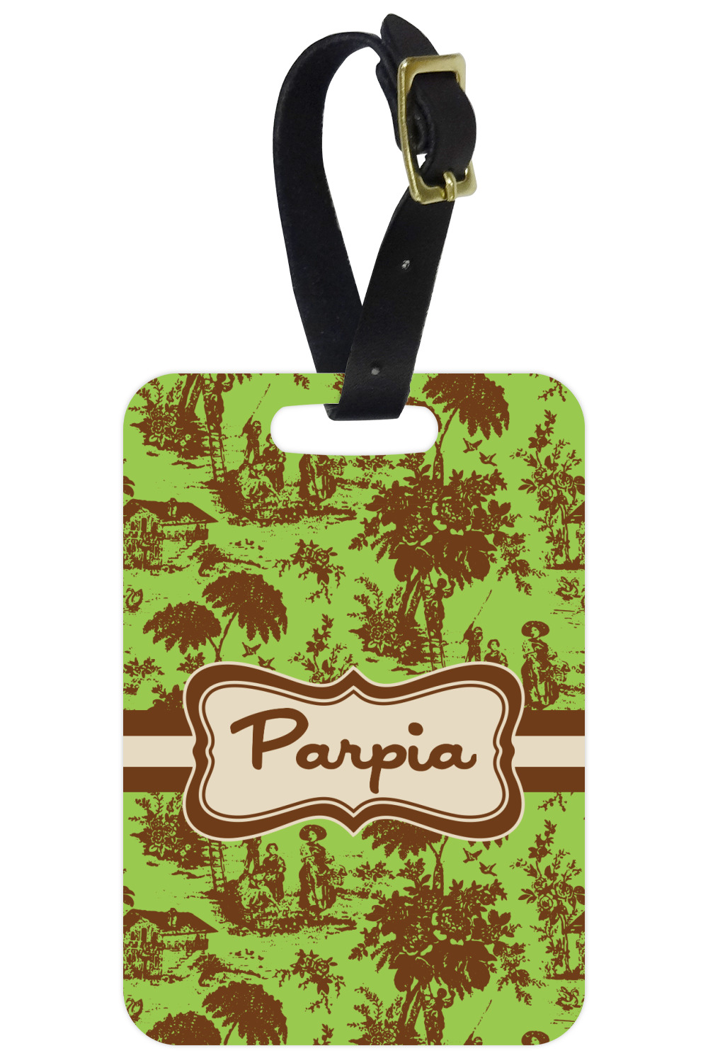 | SKU | mi-rect-luggage-tag-alum+Green-Brown-Toile |