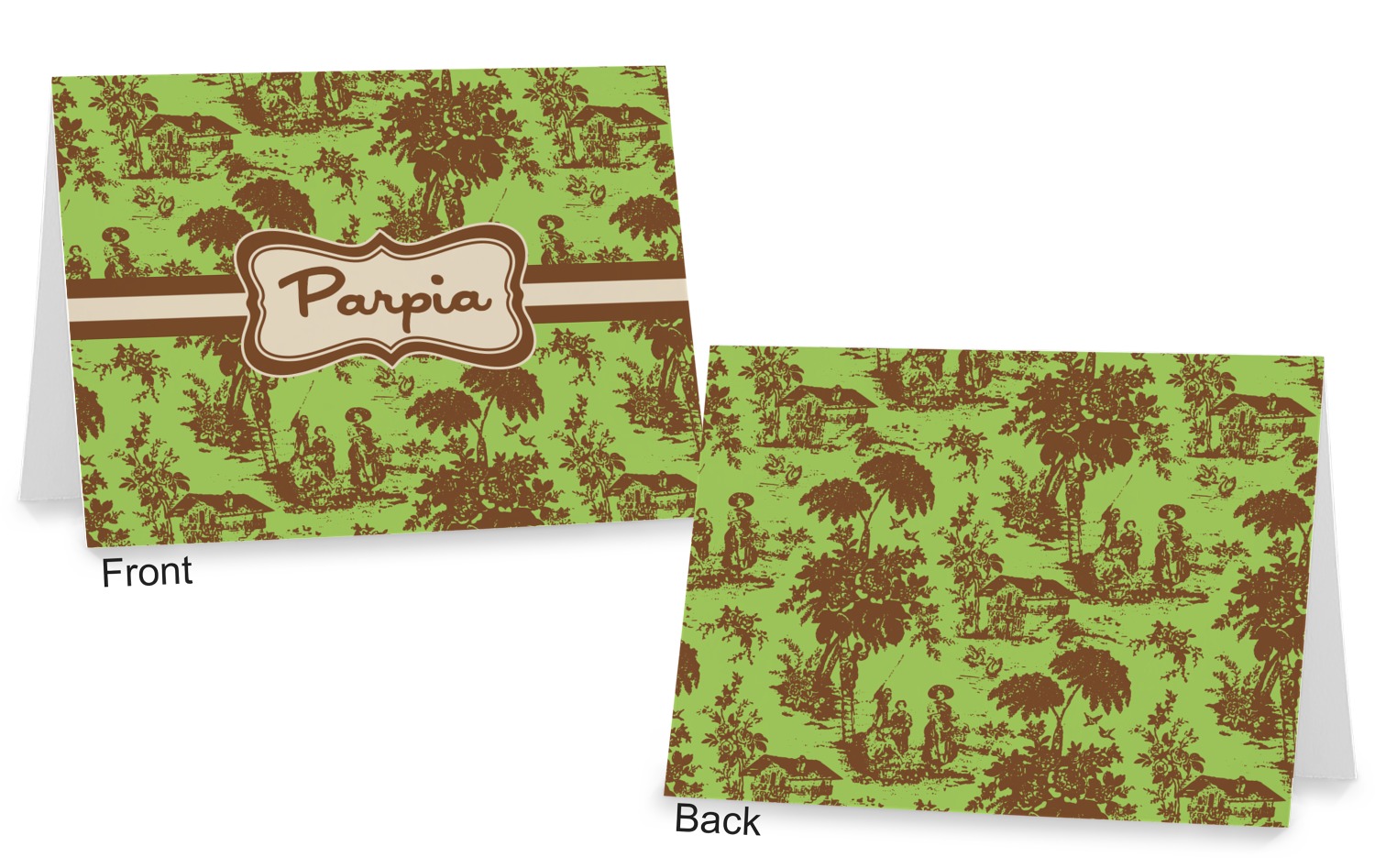 Our custom folded note cards are printed on premium 100lb. card stock and comes with white envelopes. The note card measure 5.5 by 4.25 inches and are blank on the inside for your handwritten message.