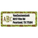 A wide band of cream with an inset of brown trim pulls the design together. A traditional label that is trimmed in double rows of brown and green will provide the focal point for personalization of your choice.