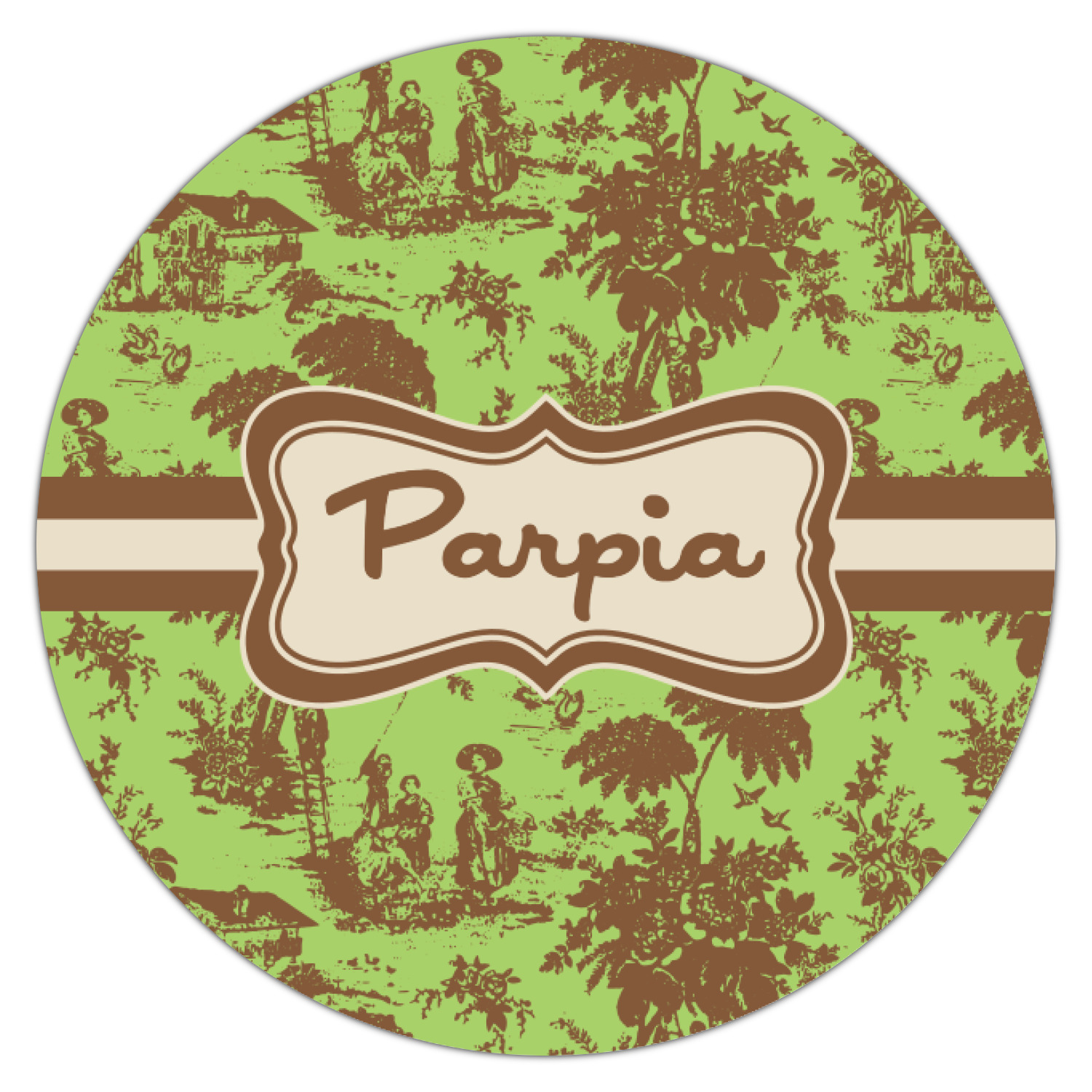 Old world toile just got dressed up. Toile has been around forever but we have taken a centuries old design and brought it to the present and beyond. We took the traditional toile design and modernized it by using brown and green. The toile pattern is created in brown which pops on a backdrop of green.