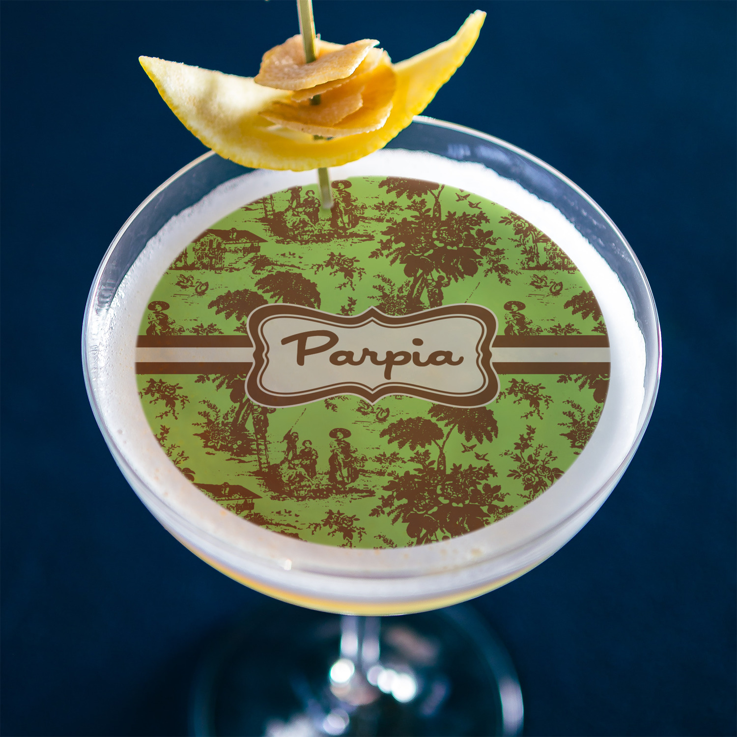 Our drink toppers are printed in full color with FDA approved edible inks. The cocktail toppers are printed on premium wafer thin icing sheets (not wafer paper) and then cut into circles.