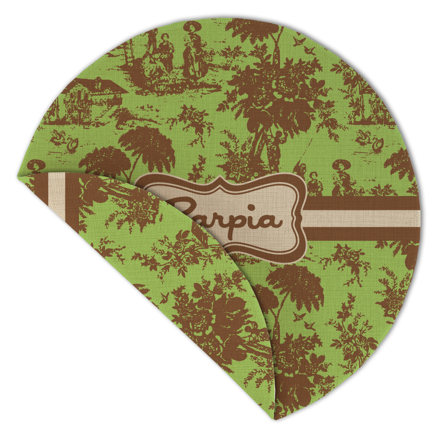 Old world toile just got dressed up. Toile has been around forever but we have taken a centuries old design and brought it to the present and beyond. We took the traditional toile design and modernized it by using brown and green. The toile pattern is created in brown which pops on a backdrop of green.