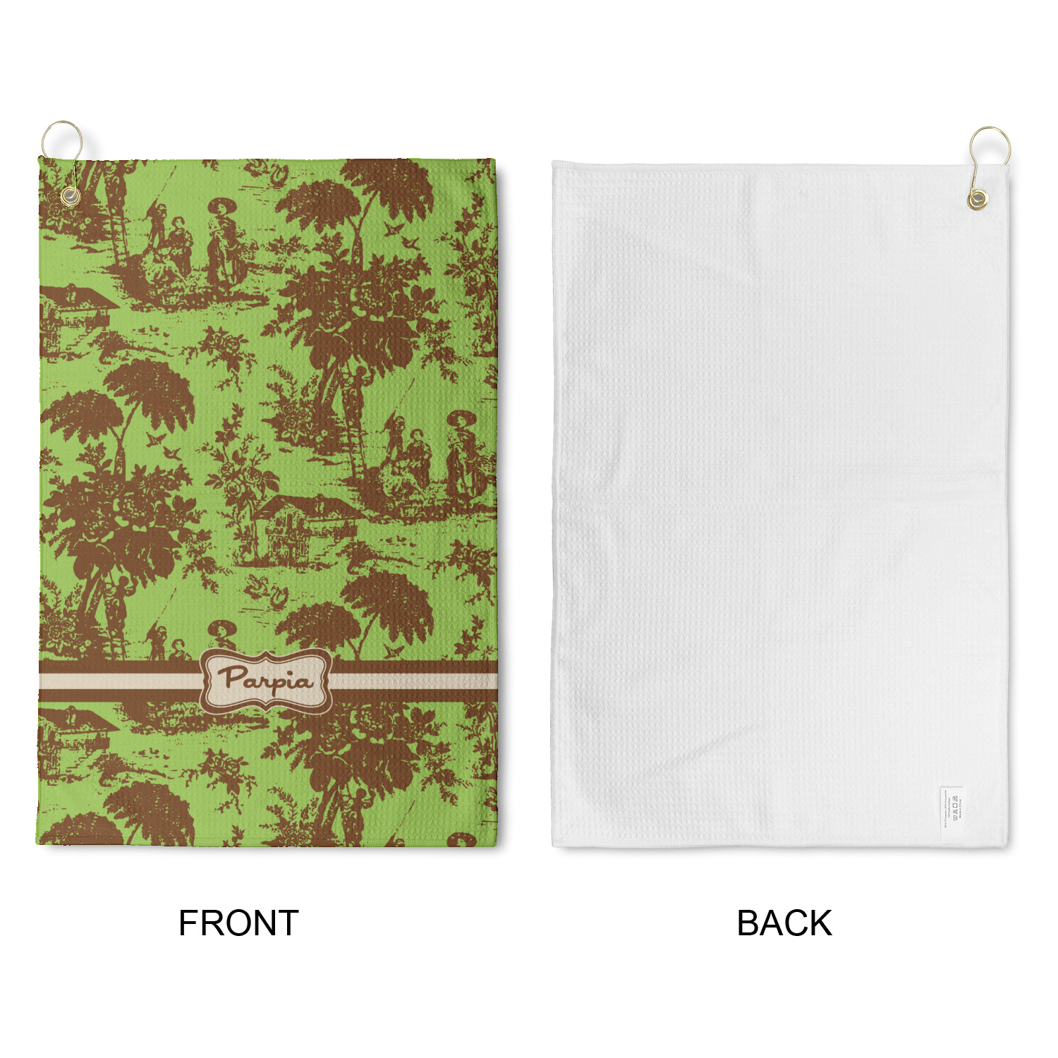 Measuring approximately 16in wide and 24in tall these towels are the perfect size for your golf bag or on your cart. The waffle weave texture makes a great texture for cleaning clubs, balls and anything else you need to clean during your golf game.
