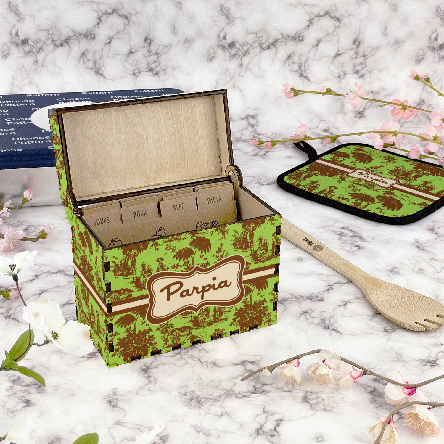 For a classic look for your kitchen counter to hold all of your family heirloom recipes look no further than this full color printed wood recipe box. These recipe boxes are sure to add a nice custom touch to your kitchen and allow you to proudly display your treasured family recipes in a beautiful custom recipe box.