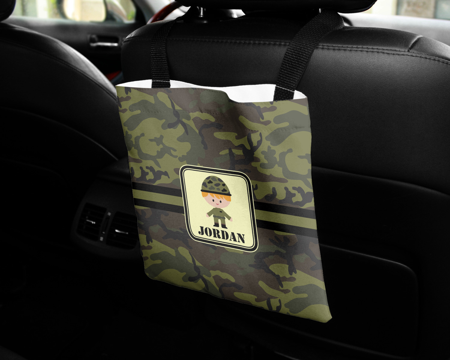 These car back seat organizers are sturdy tote-like bags, fabricated from a robust polyester, and features a single handle on the back side. The strap features an attachable velcro for easy attachment to headrests, grocery carts, car seats, and more. Simply undo the velcro, loop the strap around the headrest, reattach the velcro, and let the organizer hang from the front seat. These car organizers are the perfect means of increasing your backseat's legroom, while storing multiple items in one place for better accessibility. Each car back seat organizer measures at 10 by 10 inches, and features your personalized design printed across its front and back.