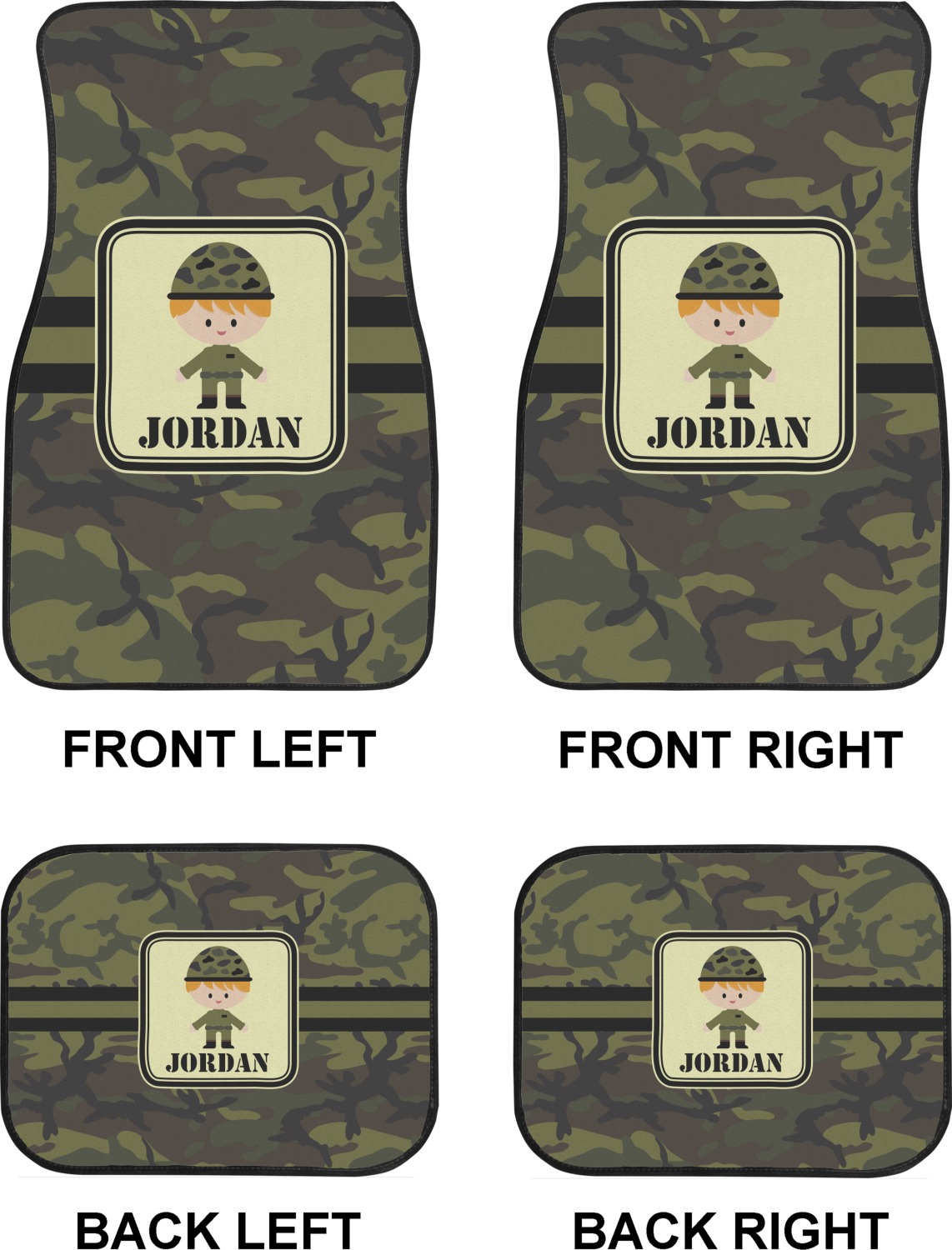 We craft our auto floor mats mats from polyester, apply a black finish to the edges, and lined at the bottom to prevent slippage. These mats protect your floors from grass, mud, and any accidental spills. We display your personalized design on the front face of each mat. The sizes of these car floor liners are standardized to provide a versatile fit for all vehicles. The front rows car mats measure at 17 by 26.5 inches, while the back rows measure at 17 by 13 inches. We sell three packages of car floor mats. You can purchase a pair of front row car mats, a pair of back row car mats, or a set of front row and back row car mats. To make an informed purchase, we recommend measuring the surface area of your car floors.
