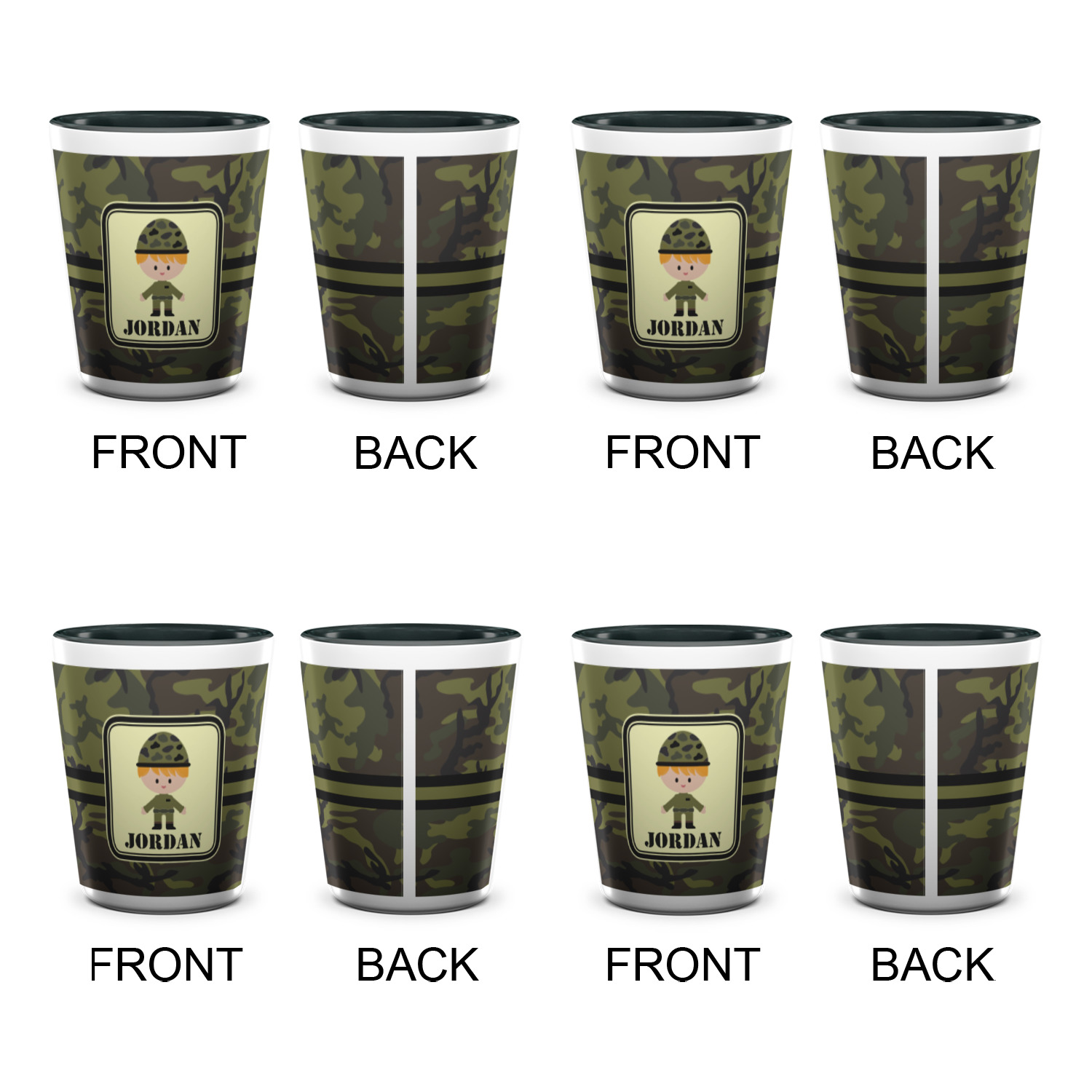 Made from ceramic these shot glasses are printed in full color with the design of your choice. These are a standard 1.5oz size and stand 2.25" tall. Available in a full white ceramic or a two-tone with a black color inside the shot glass. Buy a single or a set of 4, all of which can be designed separately to get you just what you want and need.