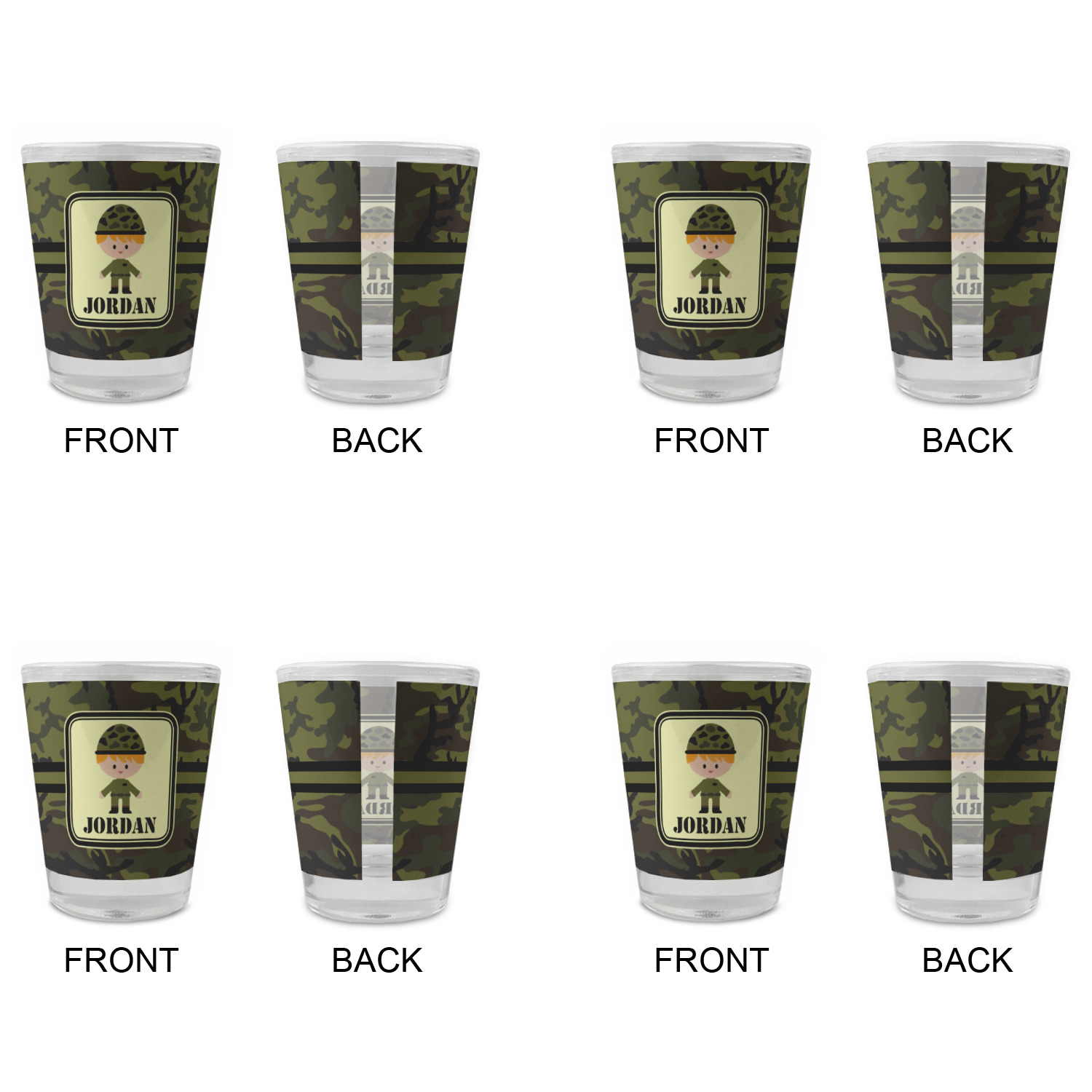 Made with frosted glass, these shot glasses are printed in full color with the design of your choice. They are a standard 1.5oz shot glass and are 2.4" tall. The print is wrapped around the shot glass in a full wrap and boldly displays your customization.