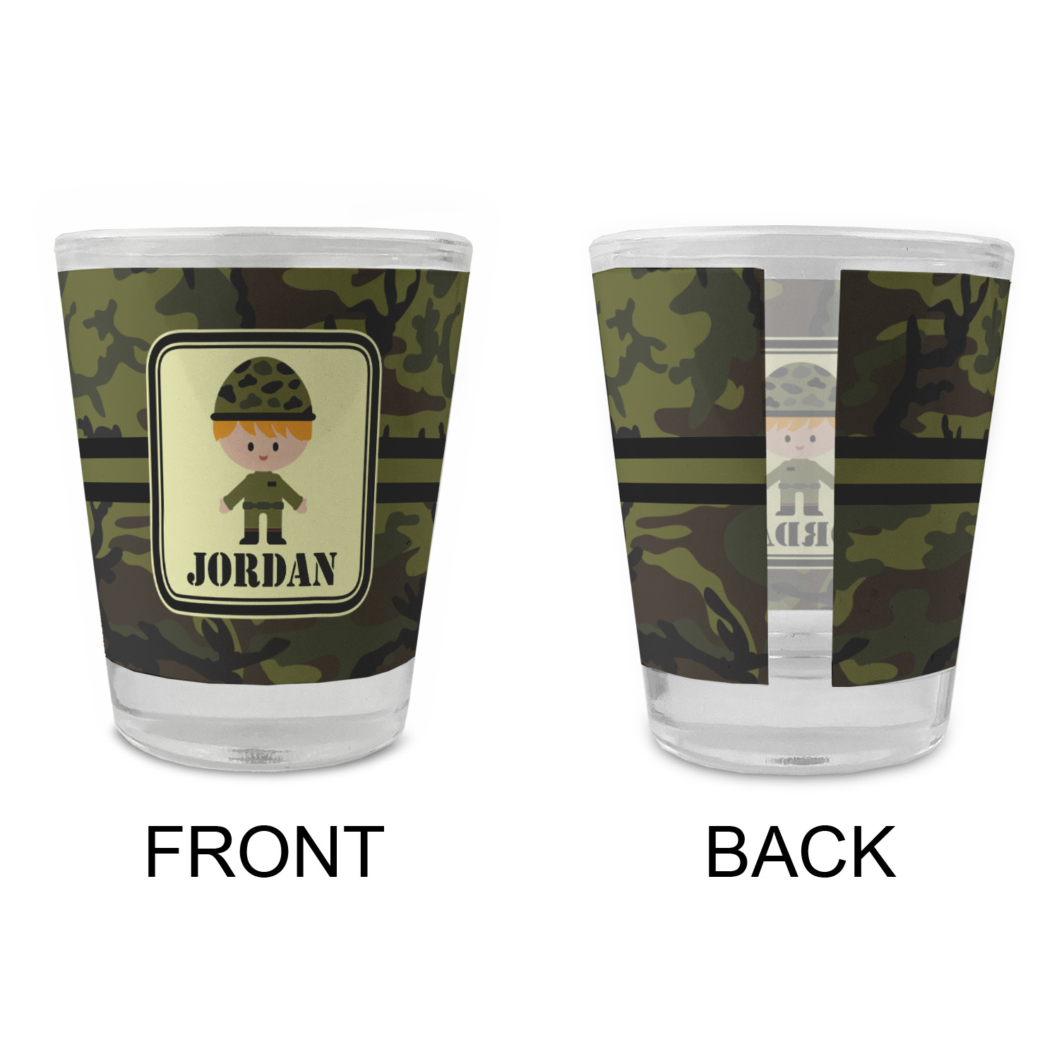 Made with frosted glass, these shot glasses are printed in full color with the design of your choice. They are a standard 1.5oz shot glass and are 2.4" tall. The print is wrapped around the shot glass in a full wrap and boldly displays your customization.