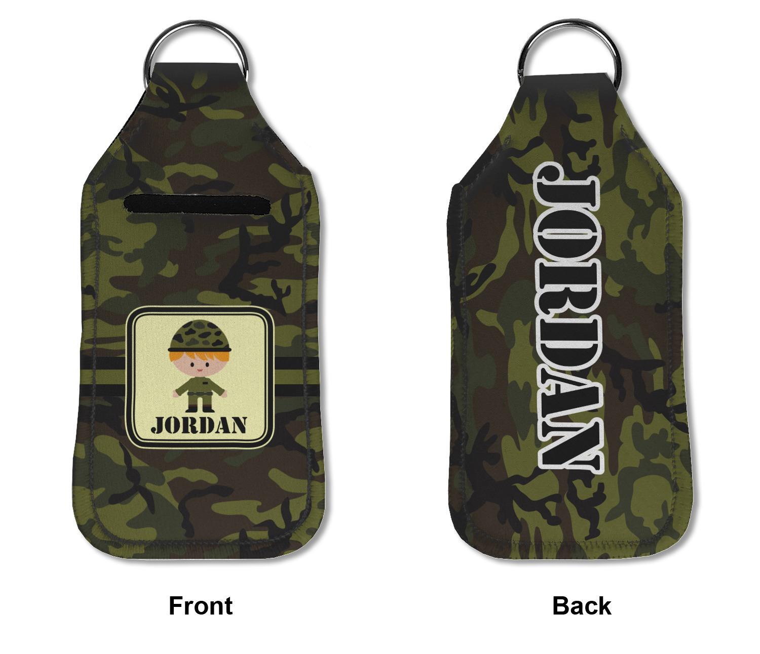 Each hand sanitizer holder comes with its own empty travel-sized, refillable hand sanitizer sure to fit snug in your customized sanitizer case! Our hand sanitizer cases are a durable, yet soft neoprene material sure to last any daily activities or travel agenda. Customize and personalize a hand sanitizer bottle holder with one of our two sizes - small (4.25" x 2.25") or large (5.5" x 2.5"). Each travel sanitizer holder comes with a keyring for attachment on bags, keys, or more!