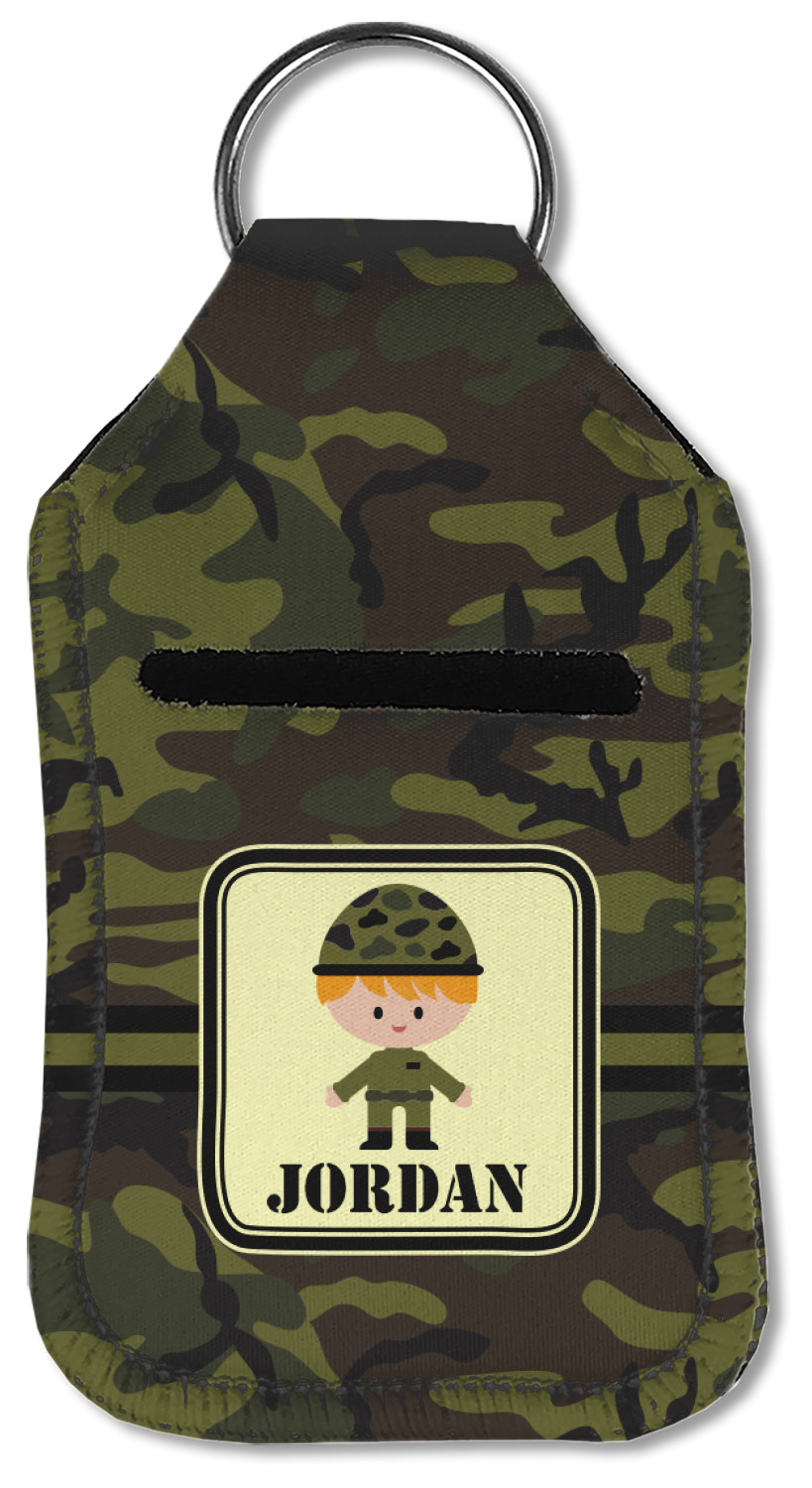 Each hand sanitizer holder comes with its own empty travel-sized, refillable hand sanitizer sure to fit snug in your customized sanitizer case! Our hand sanitizer cases are a durable, yet soft neoprene material sure to last any daily activities or travel agenda. Customize and personalize a hand sanitizer bottle holder with one of our two sizes - small (4.25" x 2.25") or large (5.5" x 2.5"). Each travel sanitizer holder comes with a keyring for attachment on bags, keys, or more!
