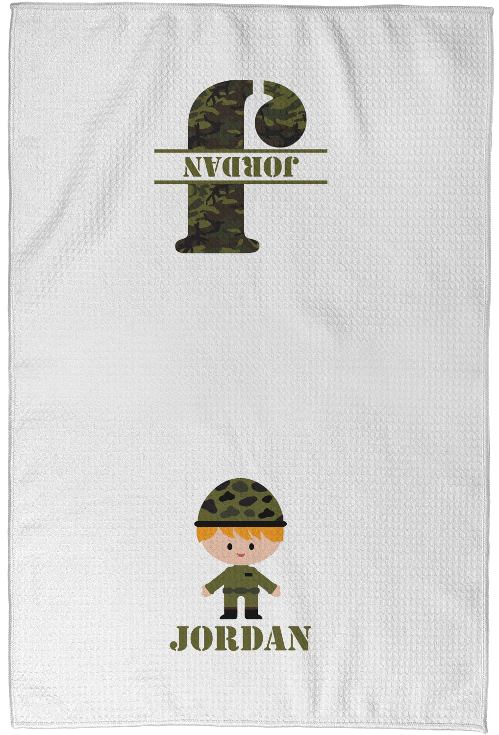 Each waffle weave kitchen towel is approximately 16 x 24 inches with your design printed on one side and the back is white.