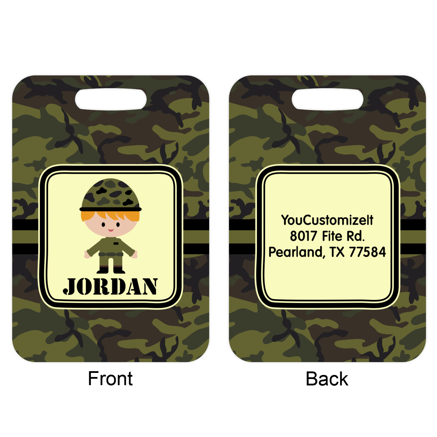 These metal luggage tags are printed on both sides; the front is printed with the design of your choice - and can be personalized with your name, name & initial or your monogram. The back can have as much or as little of your contact information as you desire - your name, your address, city, zip & state, you can also include your phone number and email address. Customize it exactly the way you want it!