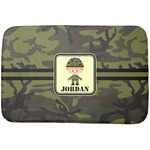 A wide band using coordinating colors runs down the middle of this design. A square label, outlined with camo colors, showcases our little military man with added personalization for the special touch.