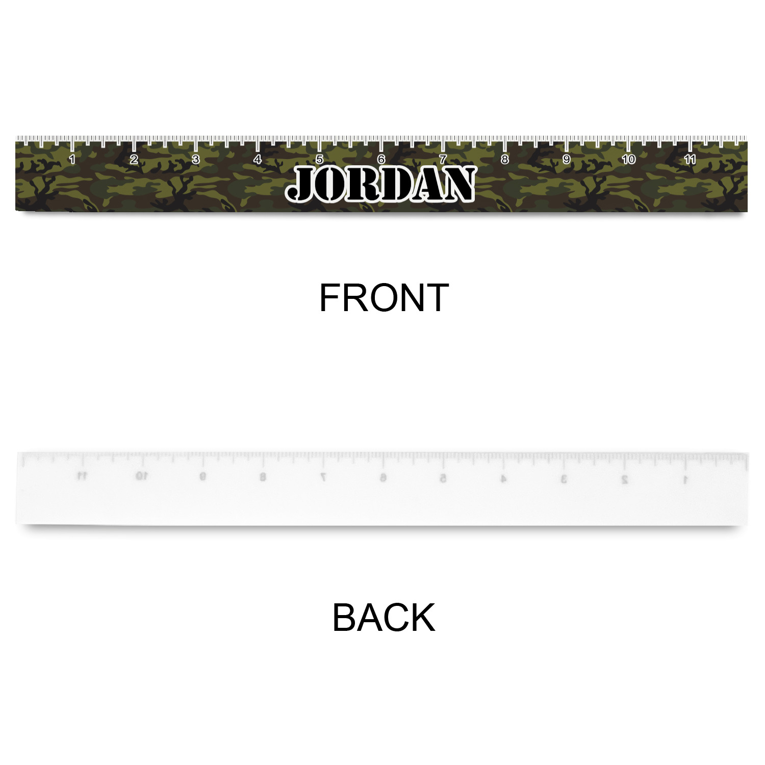 A wide band using coordinating colors runs down the middle of this design. A square label, outlined with camo colors, showcases our little military man with added personalization for the special touch.