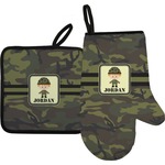 A wide band using coordinating colors runs down the middle of this design. A square label, outlined with camo colors, showcases our little military man with added personalization for the special touch.
