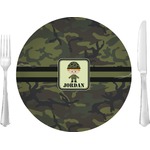A wide band using coordinating colors runs down the middle of this design. A square label, outlined with camo colors, showcases our little military man with added personalization for the special touch.
