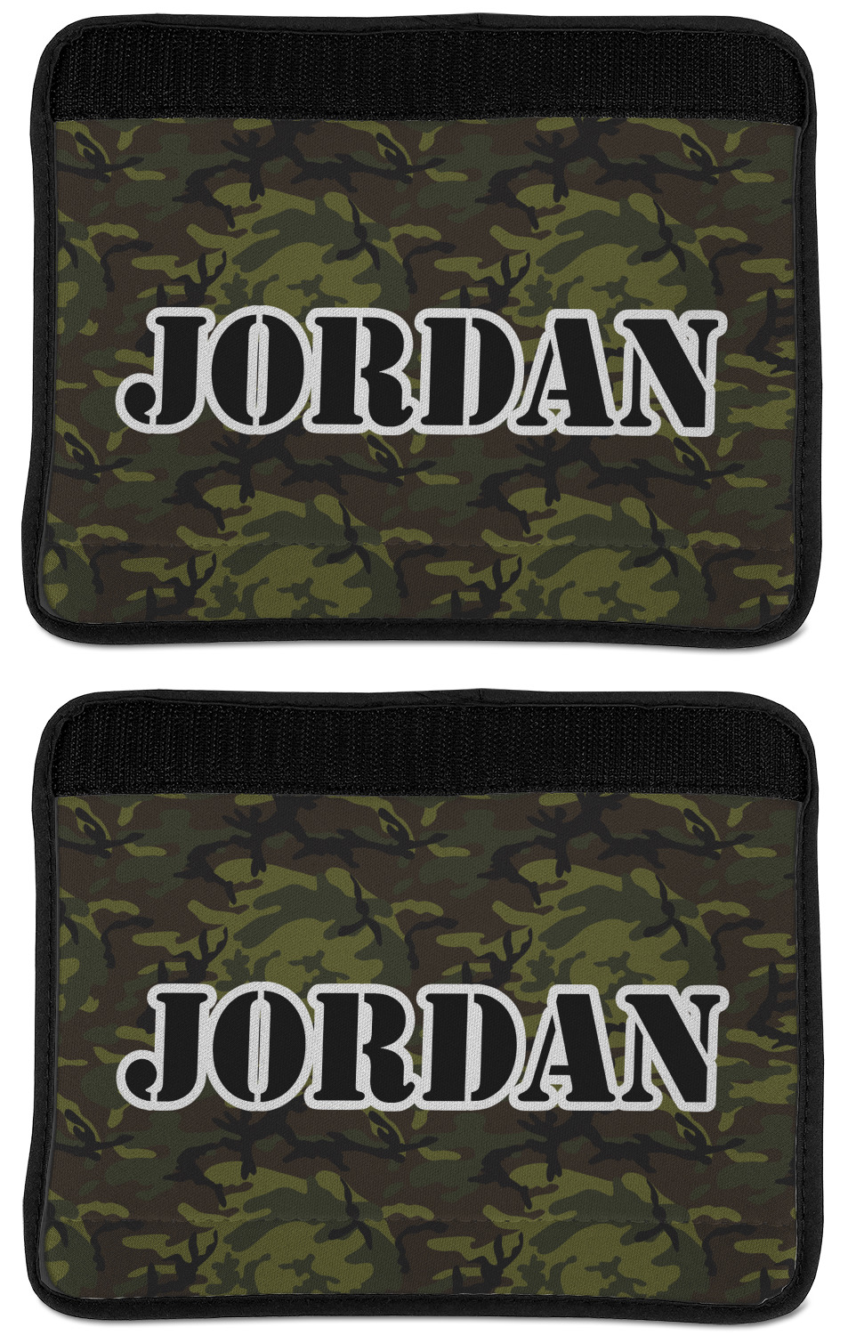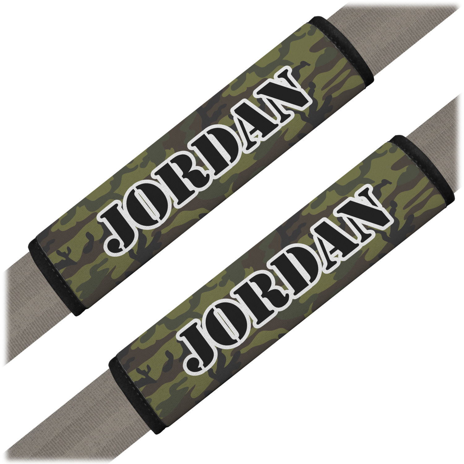 Made from neoprene, our seat belt strap covers wrap around the belt itself and have a Velcro tab for easy attachment and closure. The belt's edges are trimmed with a black polyester for a secure finish. Each cover is 9.5 by 7 inches when open and 9.5 by 2.5 inches when closed. We print your personalized design on the face of the seat belt pad.