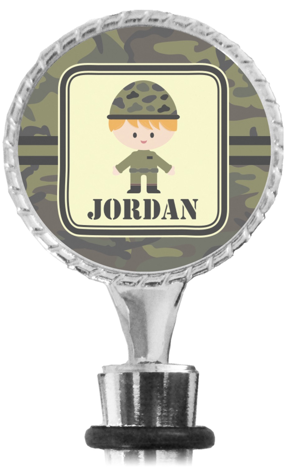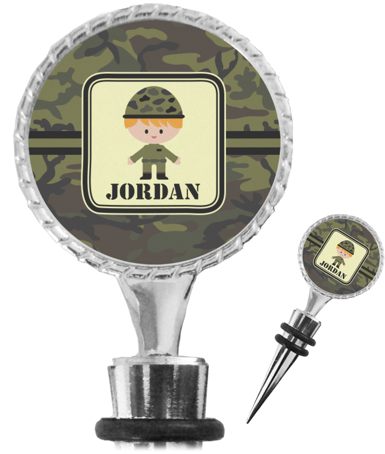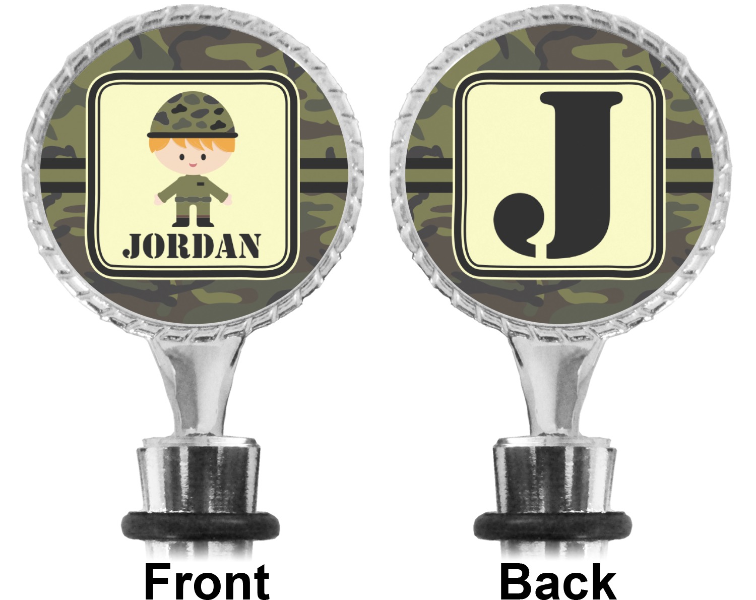The top part of your bottle stopper is comprised of a zinc ring that displays your customization(s) in its middle, on both sides. The ring is heavy duty, with a bright chrome finish. The body of the wine stoppers have two silicone rings to provide an airtight seal. These wine bottle stoppers measure at 1.625" L x 0.8125" W x 4.625" H; your custom wine stopper is meant to fit into most standard-sized wine bottles.