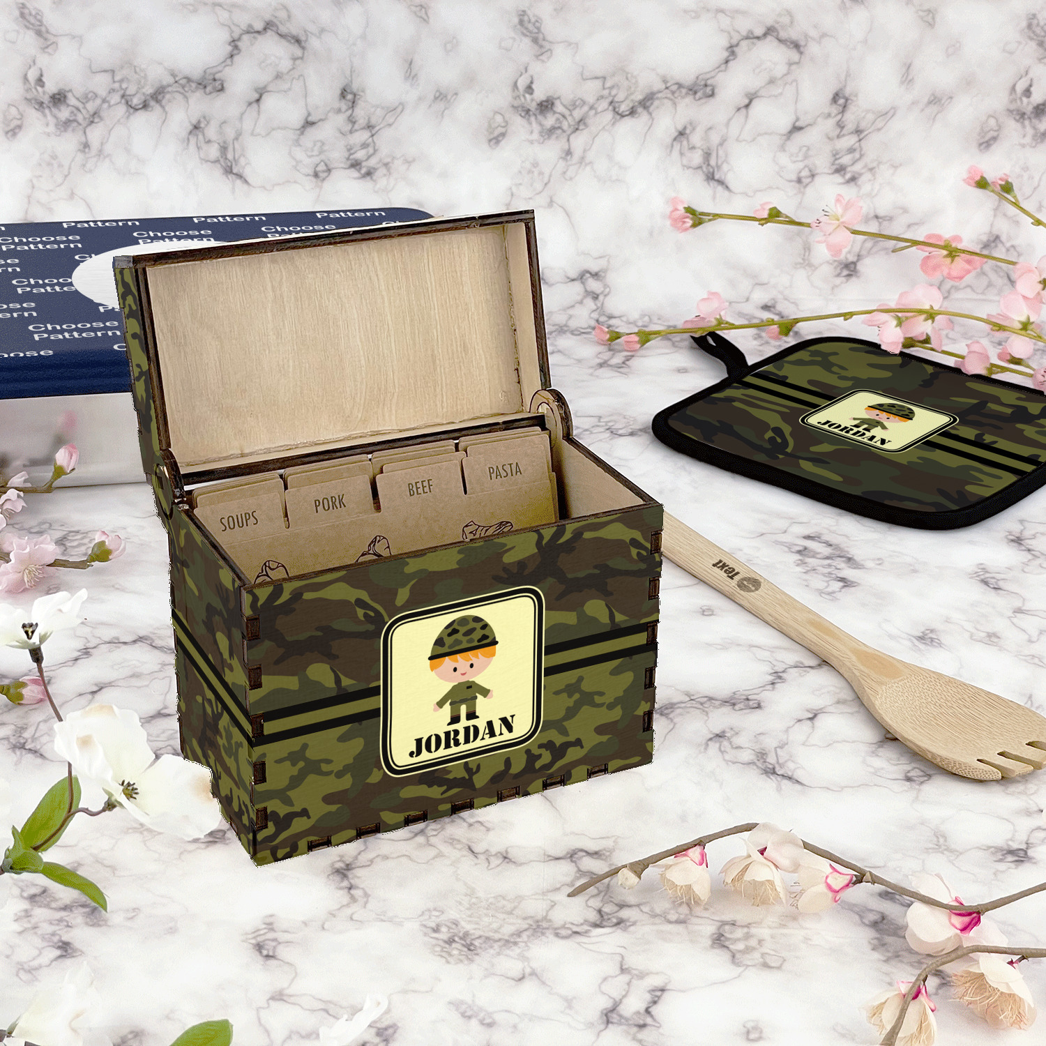 For a classic look for your kitchen counter to hold all of your family heirloom recipes look no further than this full color printed wood recipe box. These recipe boxes are sure to add a nice custom touch to your kitchen and allow you to proudly display your treasured family recipes in a beautiful custom recipe box.