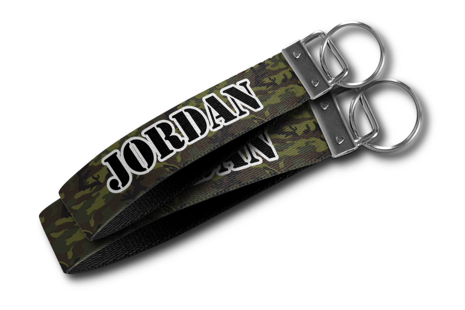 These key fob keychains are made from a polyester weave, right here in the USA. They feature a silver, metal clasp, attached to a round keyring. The piece gives the personalized wristlet a beautiful, finished look. Your customized design is printed on the outside of the keychain strap. We carry these wristlets in two sizes: small, which is 5 inches in width, and large, which is 5.5 inches in width.