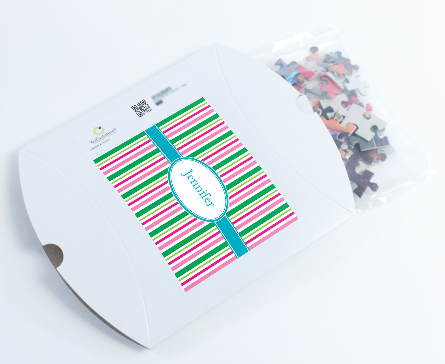Depending on the look you are trying to achieve, you can add; a thematic pattern or background, with a photo in a frame and text or personalization to your puzzle. Basically if you can imagine it, you can design it!
