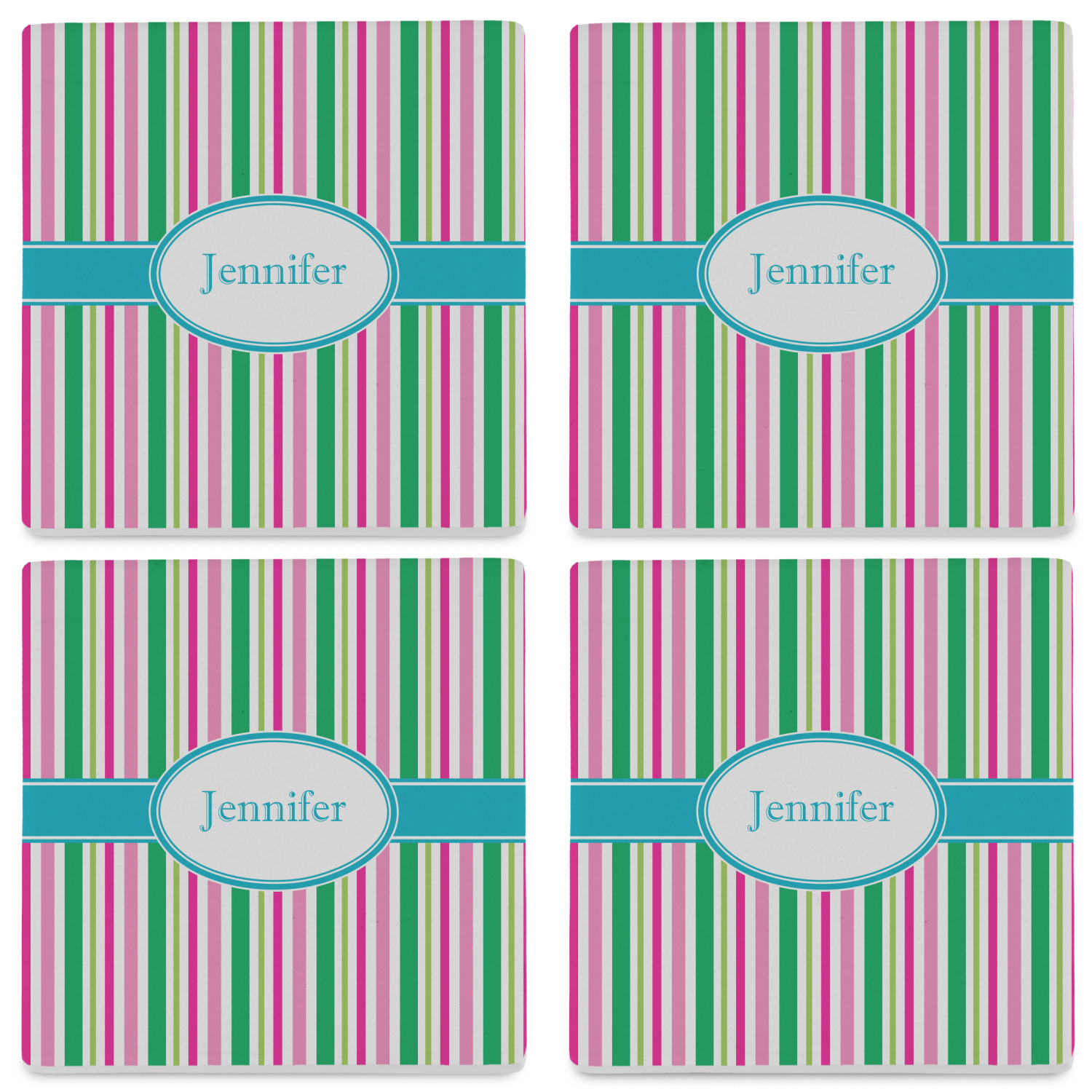 At YouCustomizeIt.com, you can put any design on the coasters. You can upload your own design, photo or logo; you can customize one of our designs and customize the patterns, colors, fonts etc.