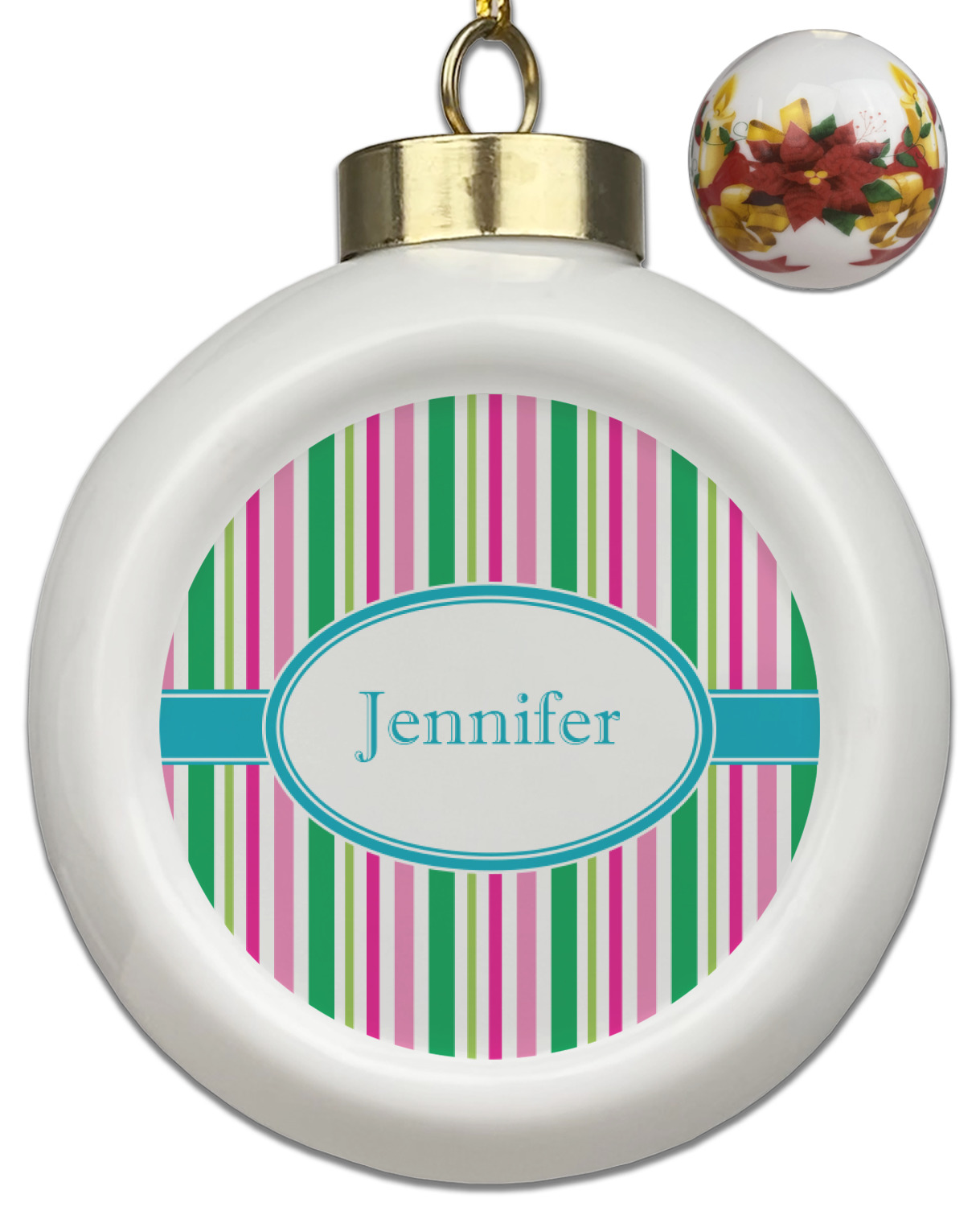 Our Christmas ornaments are a unique ceramic ball shape with a twist as it has a flat face to display your custom design! Select from one of our two design types - Christmas Tree or Poinsettia Garland - to adorn the curved back of your personal design. Each ornament measures 3H x 2.5W x 2D accompanied with a gold string accent for finishing touches to hang on your beautiful Christmas tree!