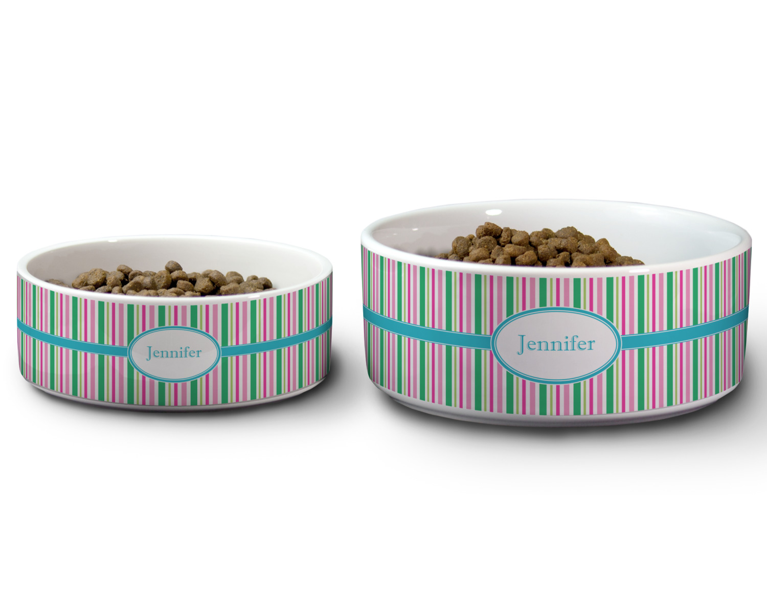 Our customized, ceramic dog bowls allow you to fashion a durable, yet expressive gift for your pet. These bowls are fashionably versatile; they suit both cats and dogs and can hold either food or water. Add your pet's name or favorite color to the design, and spruce up his/her eating area with one or two personalized pet bowls!